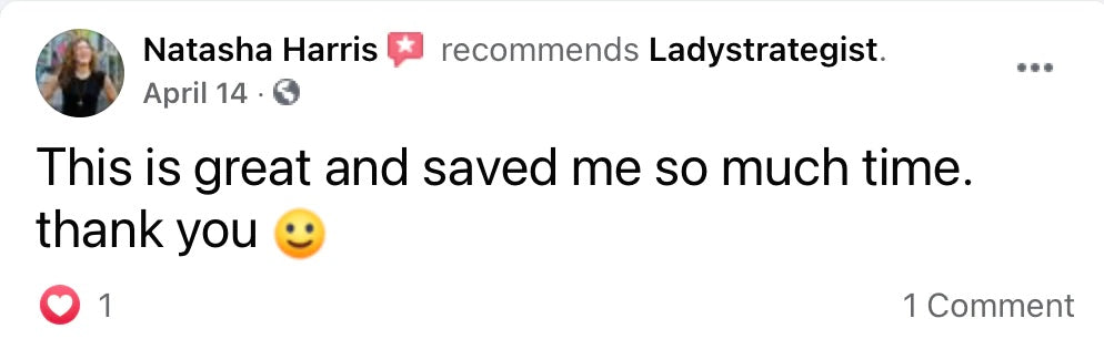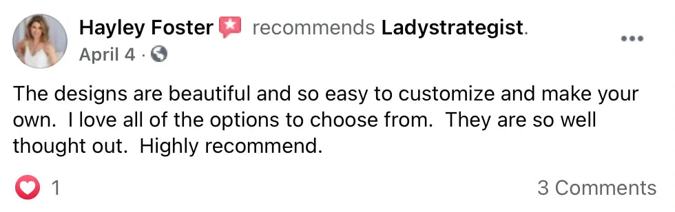 My team is ready and willing to answer any questions you might have. Feel free to send us an email at help@ladystrategist.com