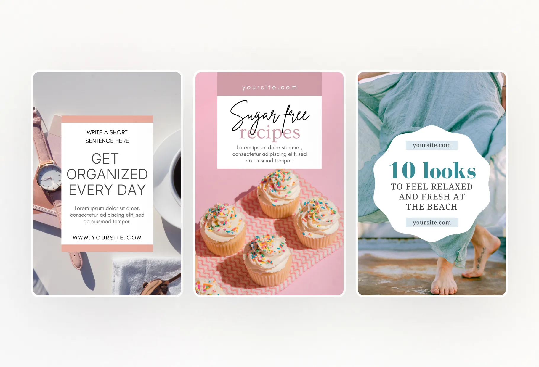 Overwhelmed by the number of pins you need to create? I’ve got your back! With these templates, you can easily create beautiful Pinterest images in minutes. No more spending hours on a single pin! Plus, they’re so easy to use that even if you’ve never created a pin before, it’ll be as simple as 1-2-3!