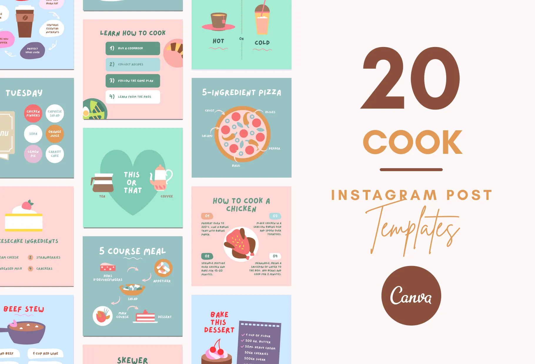 20 Cook Infographics Instagram Posts Fully Editable Canva Templates