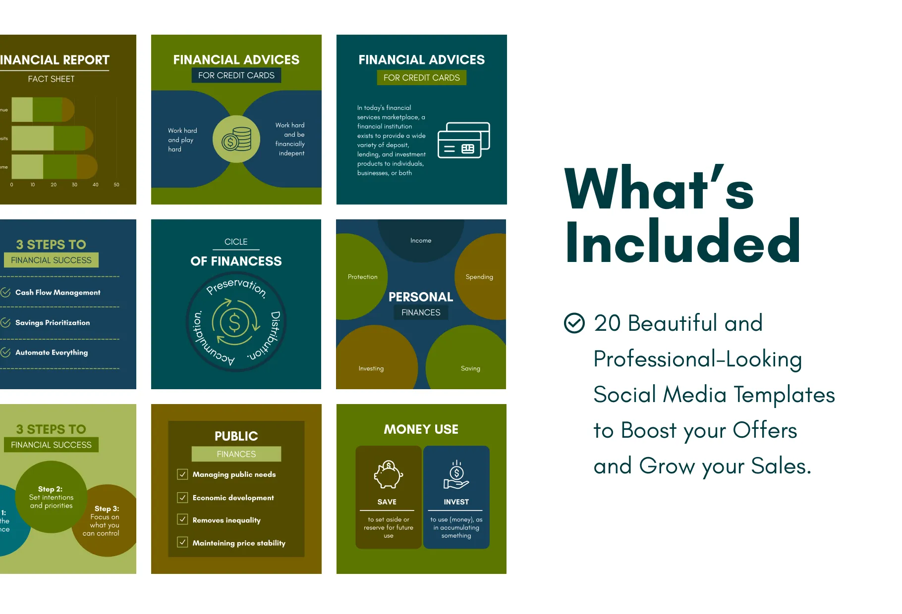 20 Finances Infographics Instagram Posts Fully Editable Canva Templates
