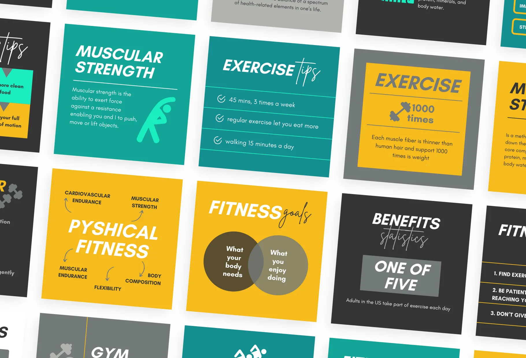 20 Fitness Infographics Instagram Posts Fully Editable Canva Templates V2