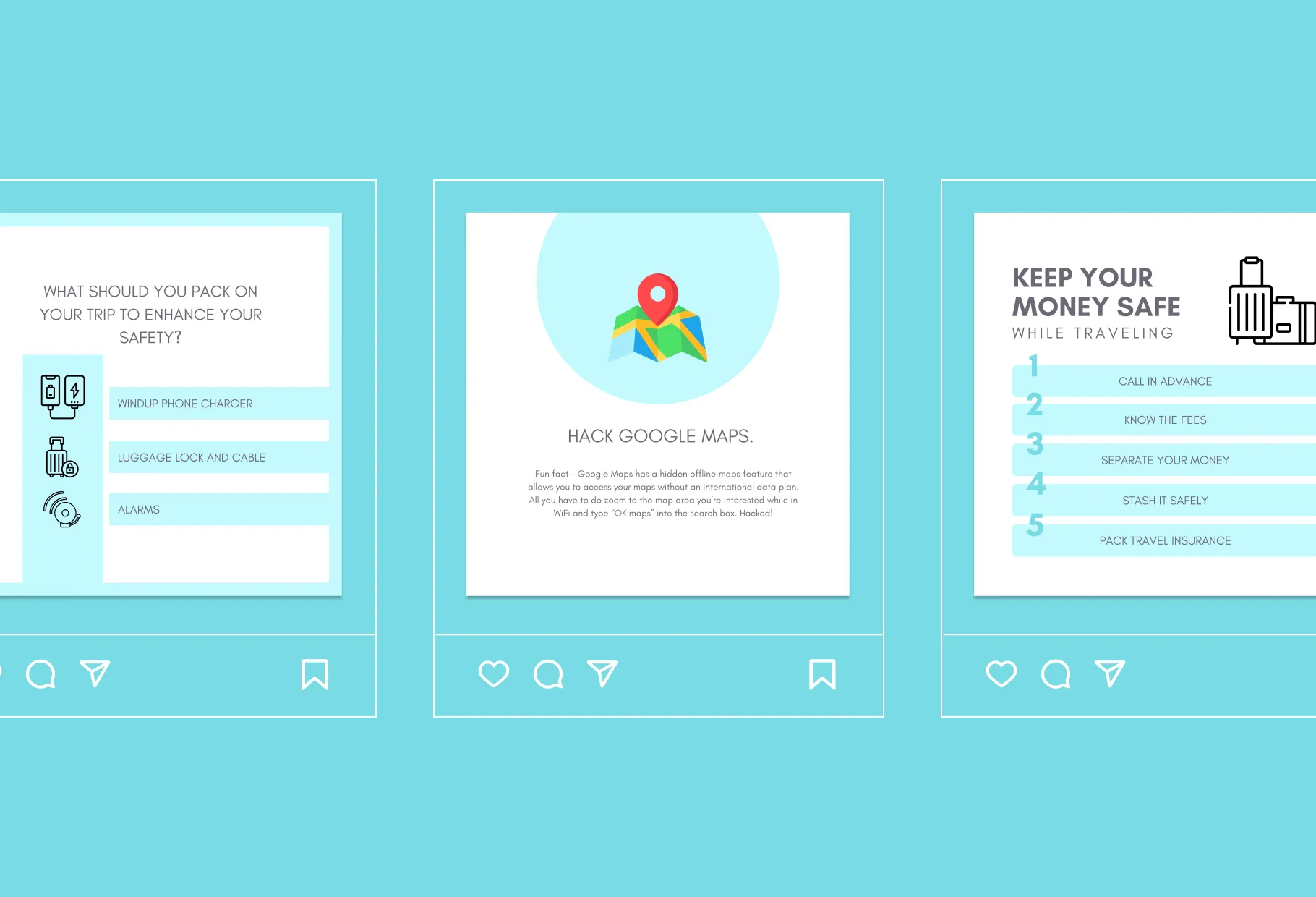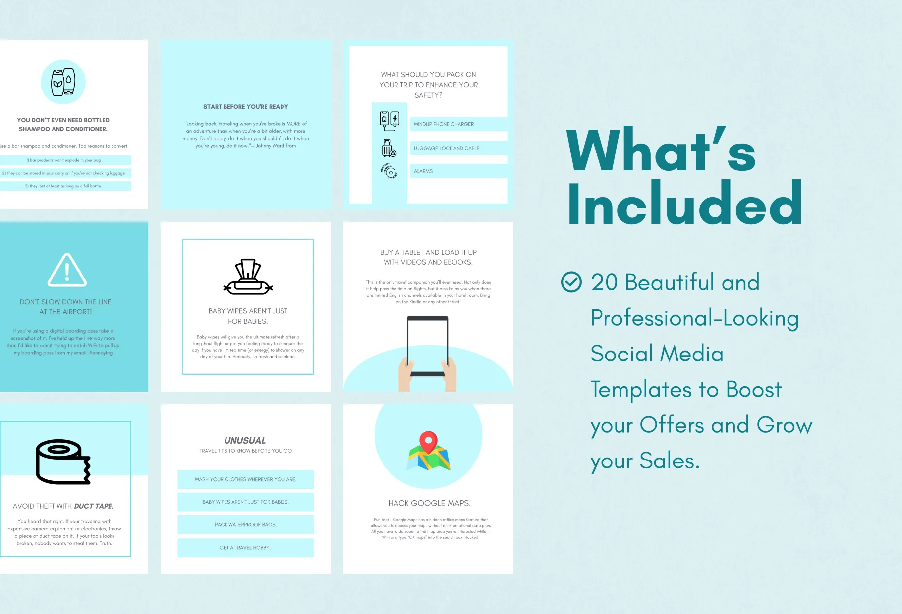Your social media presence will skyrocket when you pair a consistent feed with dynamic marketing content highlighting your travel industry know-how. And why not do so, with my 20 Travel Infographics Instagram Post Canva Templates, professionally optimized and with usable real text, so you can make use of them faster than you can say take off. Maybe you’re a travel guide or agency looking to provide your clients with need-to-know travel tips alongside promoting your services, well my Travel Infographics are just the marketing tool you need to boost your audience engagement. This template pack is 100% customizable thanks to Canva’s accessible platform, so you can easily edit colors, input your logo and so much more. Download my 20 Travel Infographics Instagram Post Canva Templates and watch followers turn into paying clients.
