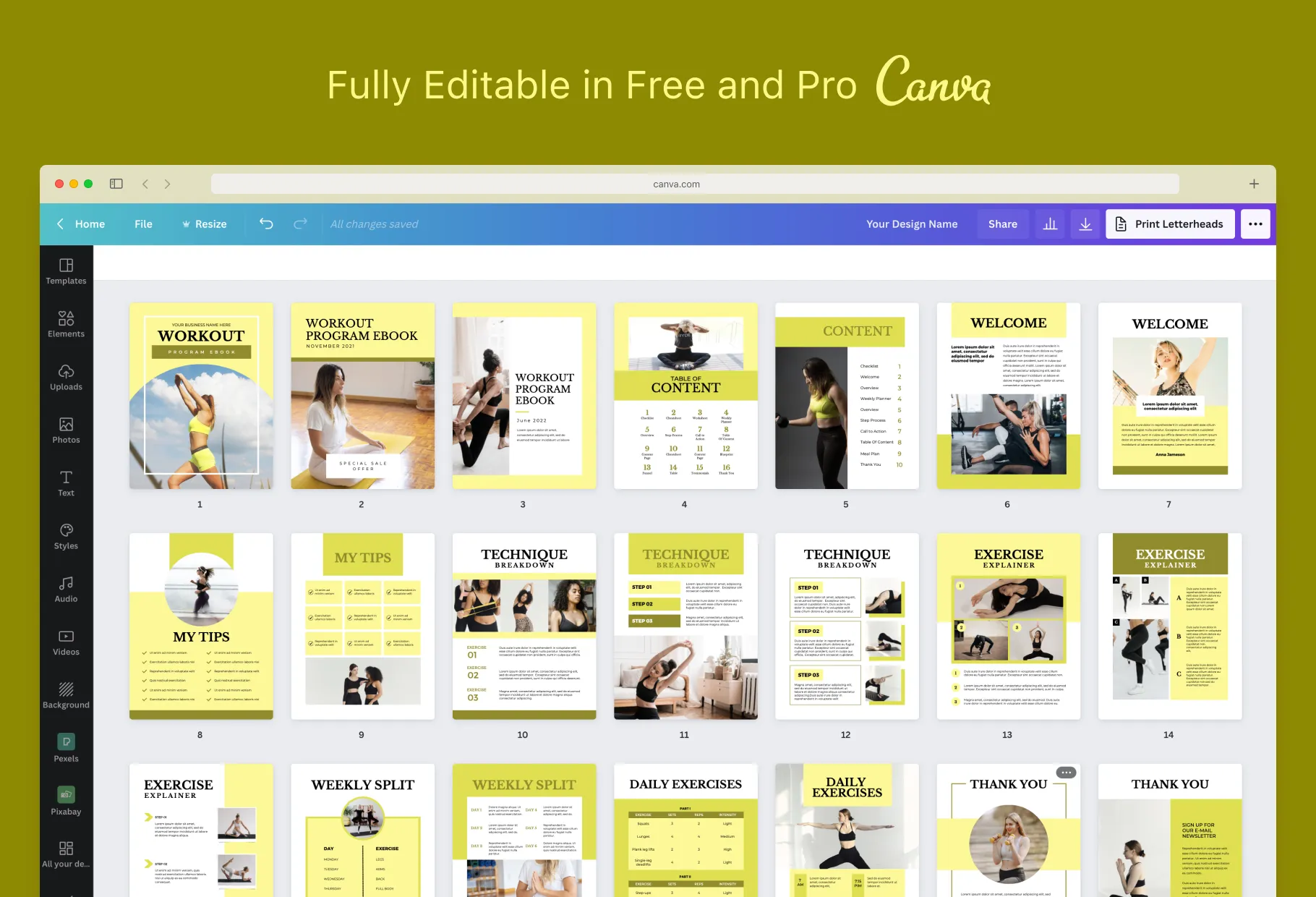 21 Page Workout Program Ebook Citrine Canva Templates
