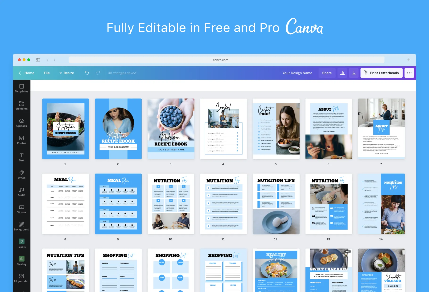25 Page Nutrition Recipe Ebook Iceberg Editable Canva Templates
