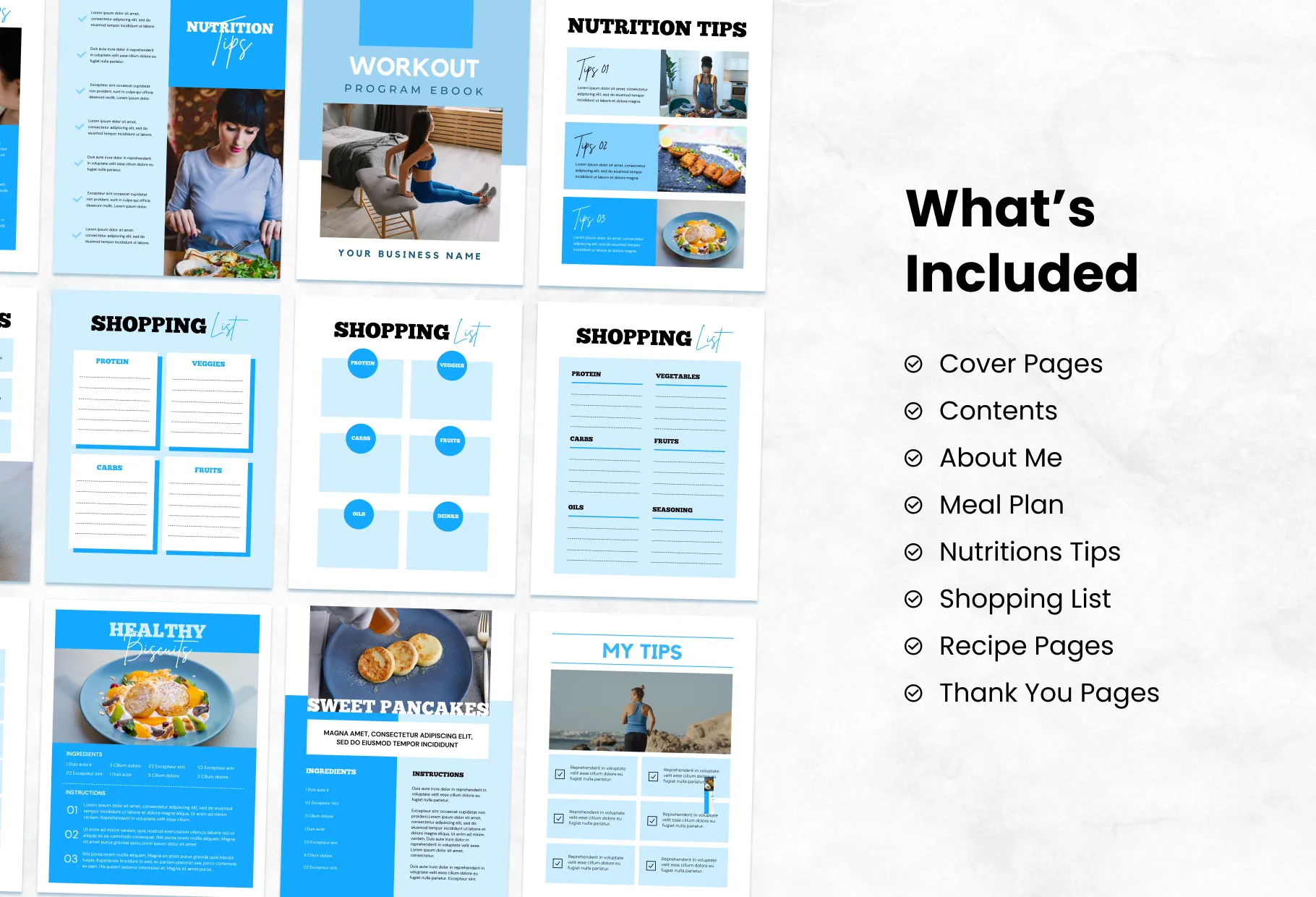 Want to go from coaching local clients to unlocking a global clientele with your nutrition coaching services? Then you'll want to use my Iceberg 25-Page Nutrition Recipe Ebook Template. That's because this refreshing blue template has been professionally optimized with editorial style imagery and pre-formatted in easy-to-navigate layouts, so you can boast a well-curated ebook without hassling with an expensive designer. Talk about reclaiming the growth of your business, and why stop there? Introducing your work to prospective clients with my template couldn't be easier. This template makes for an effective lead magnet, which you can later customize to embody a bespoke nutrition plan for a specific client. Don't be limited by location either; thanks to this easy-to-share asset, you can reach clients near and far with your expertise, all while reclaiming your precious time. My versatile template is bold in color and rich in content; download this Iceberg 25-Page Nutrition Recipe Ebook Template now and watch your nutrition coaching business transform!