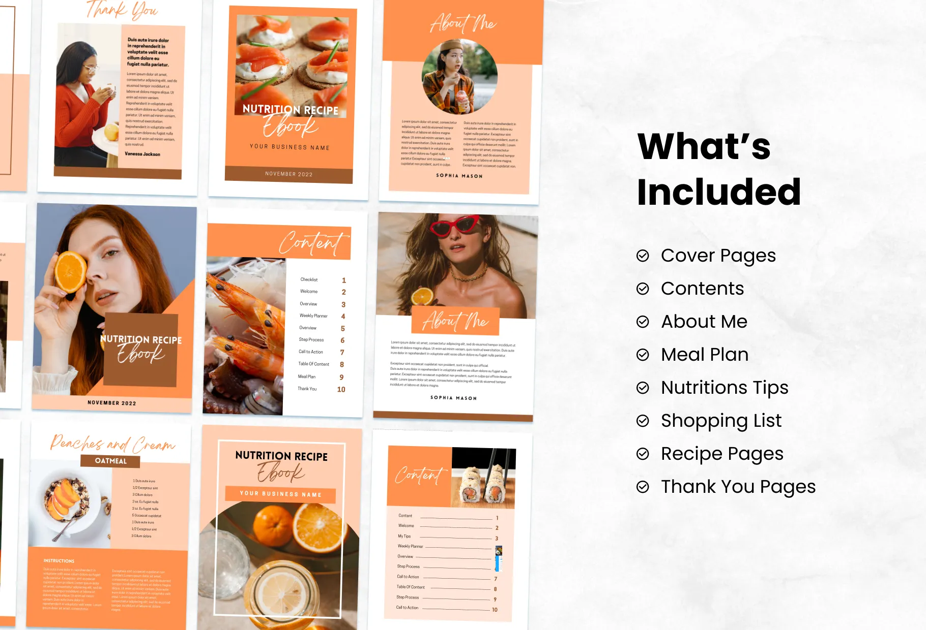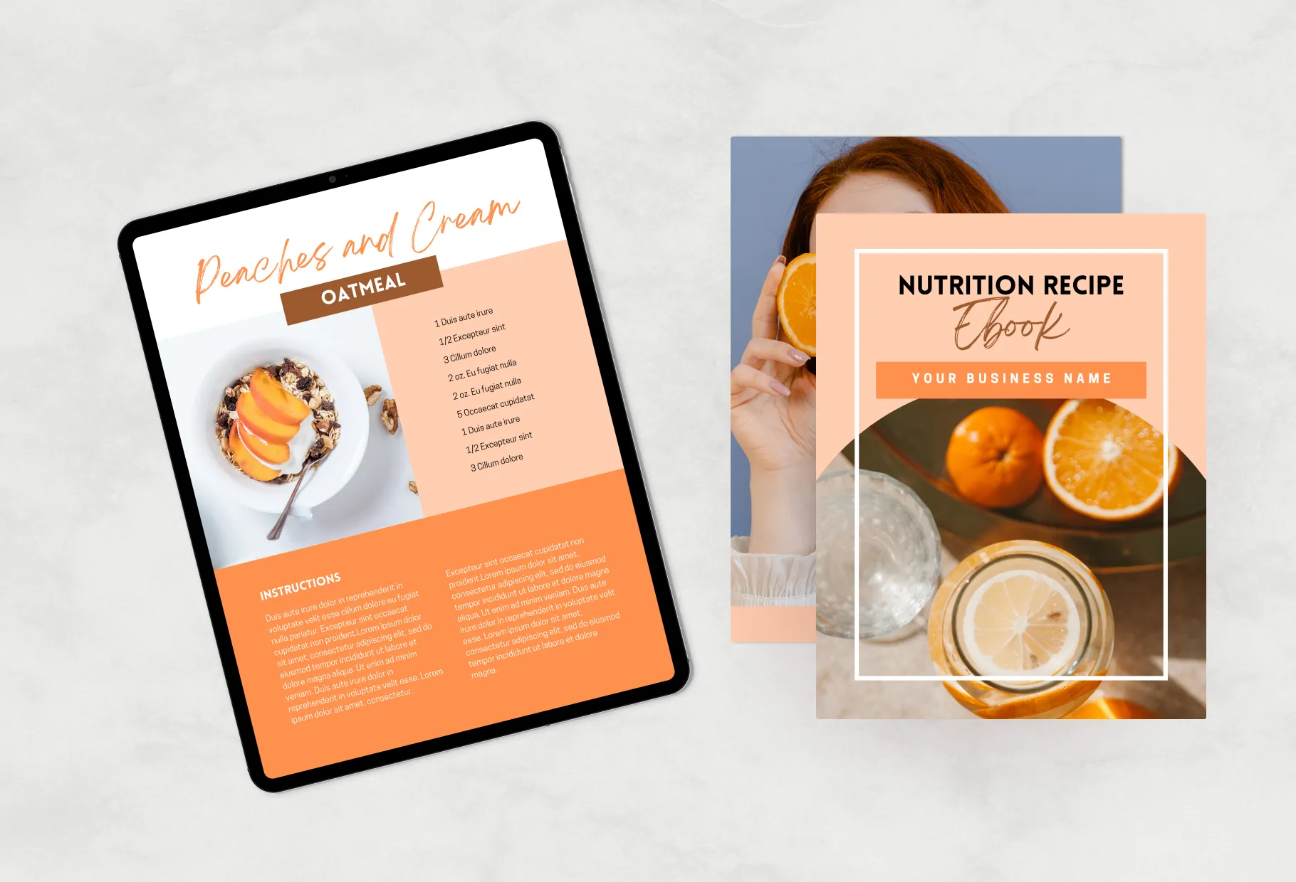 25 Page Nutrition Recipe Ebook Tangerine Editable Canva Templates