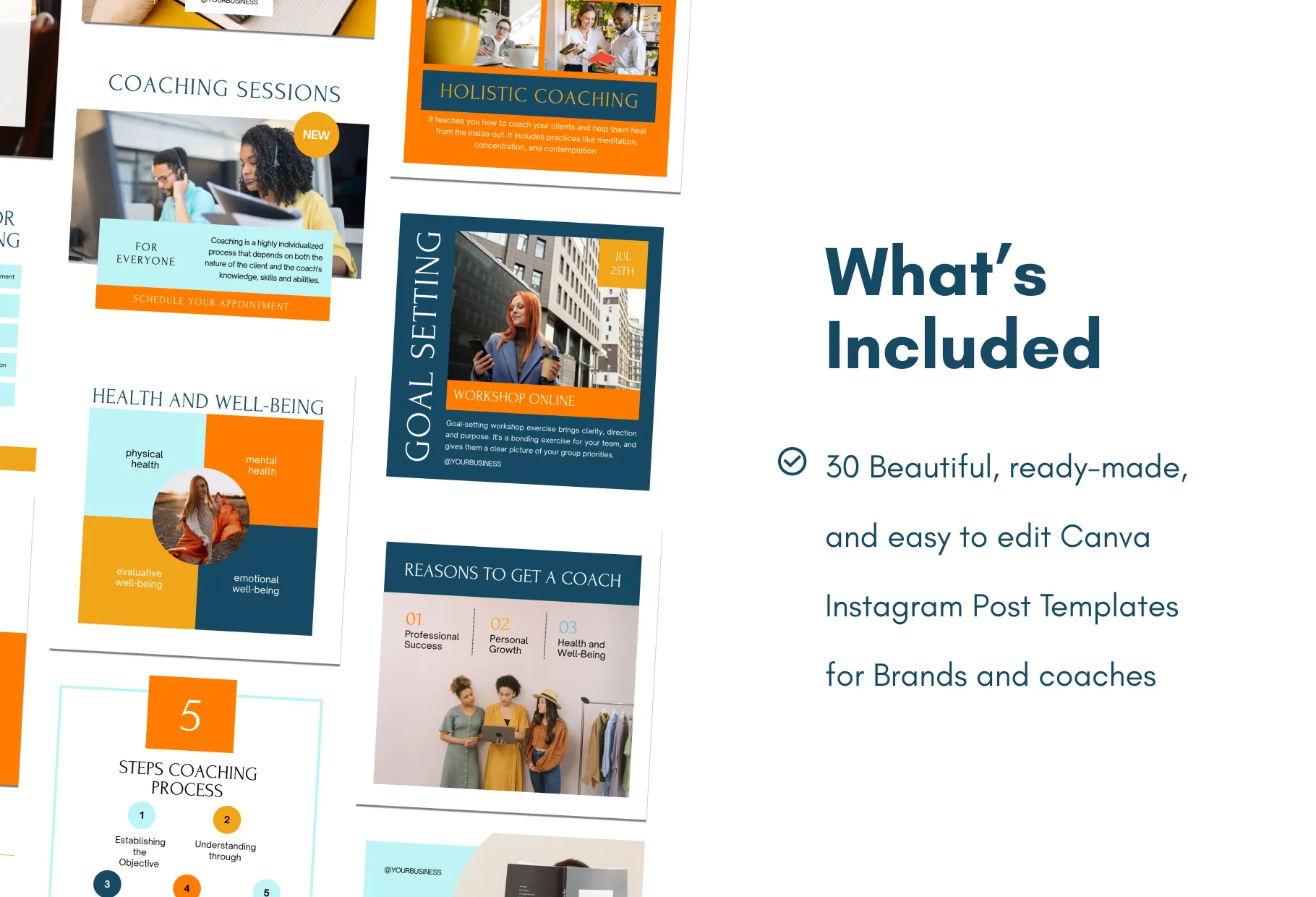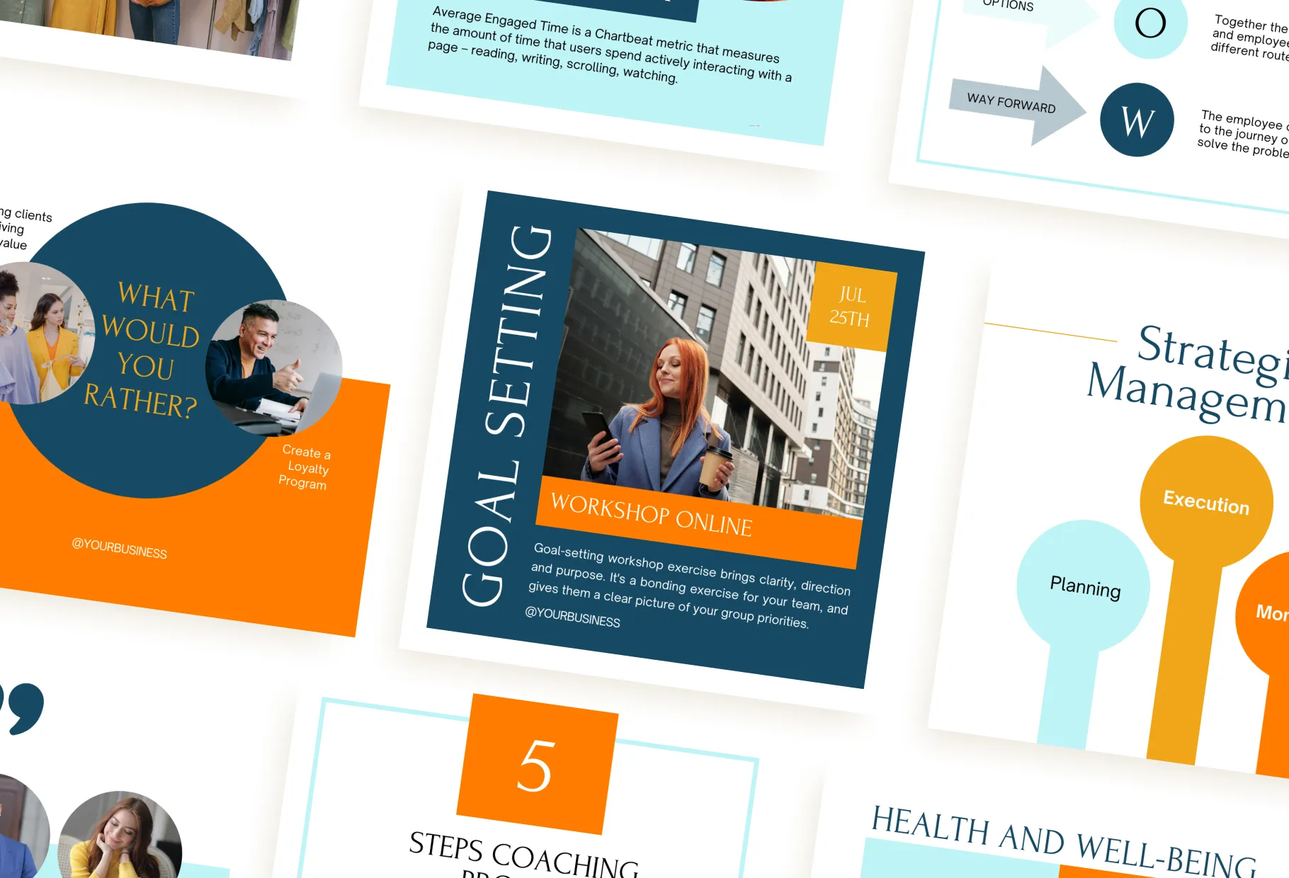 Download this set of pre-designed social media canva templates with real text to help you grow your audience with engagement boosting and share-worthy marketing designs, show up as an authority in your industry, turn followers into paying customers, and give your feed an instant boost while save you time and effort so you don't have to invest time writing or designing content from scratch.