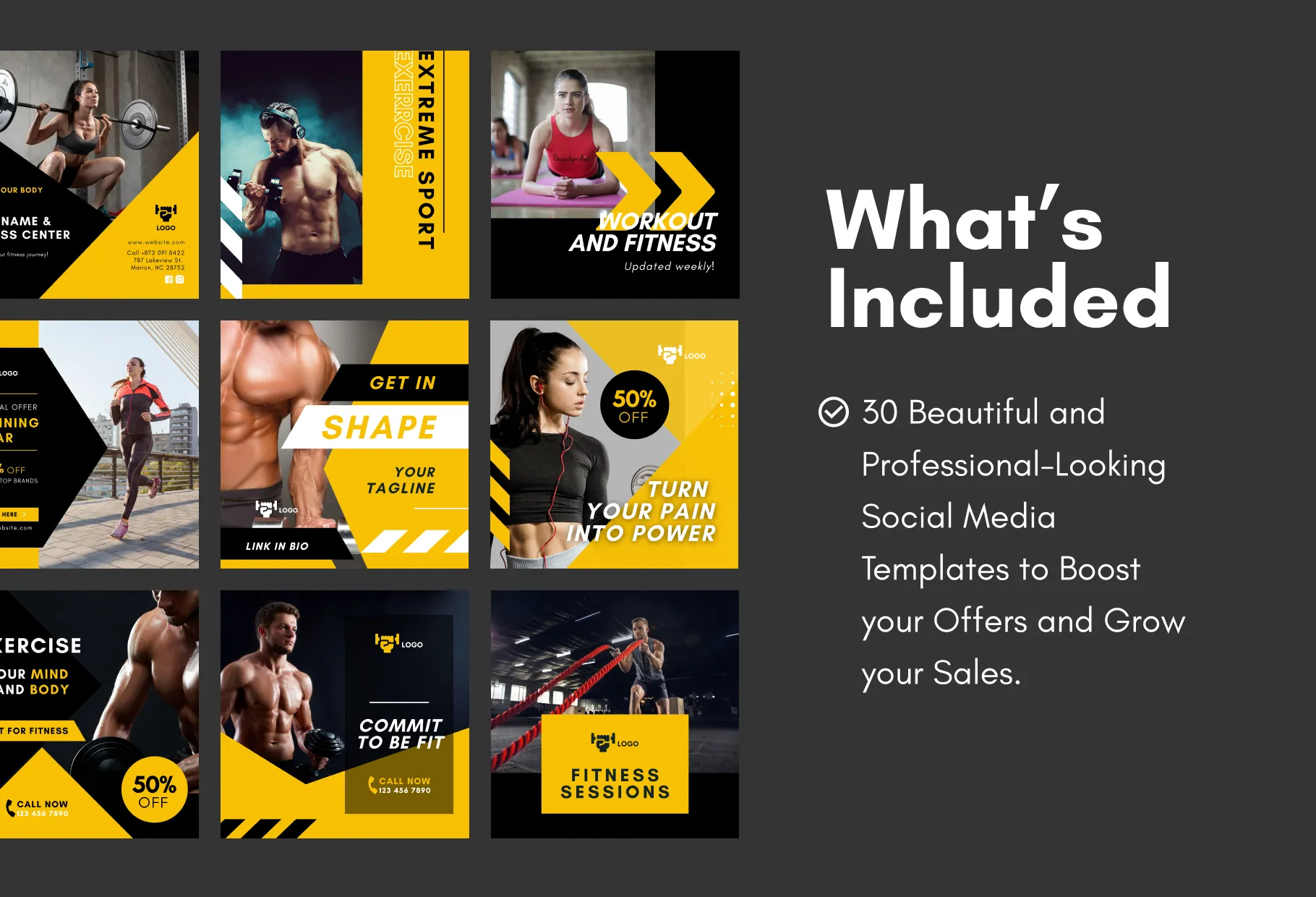 30 Fitness Instagram Engagement Post Canva Templates