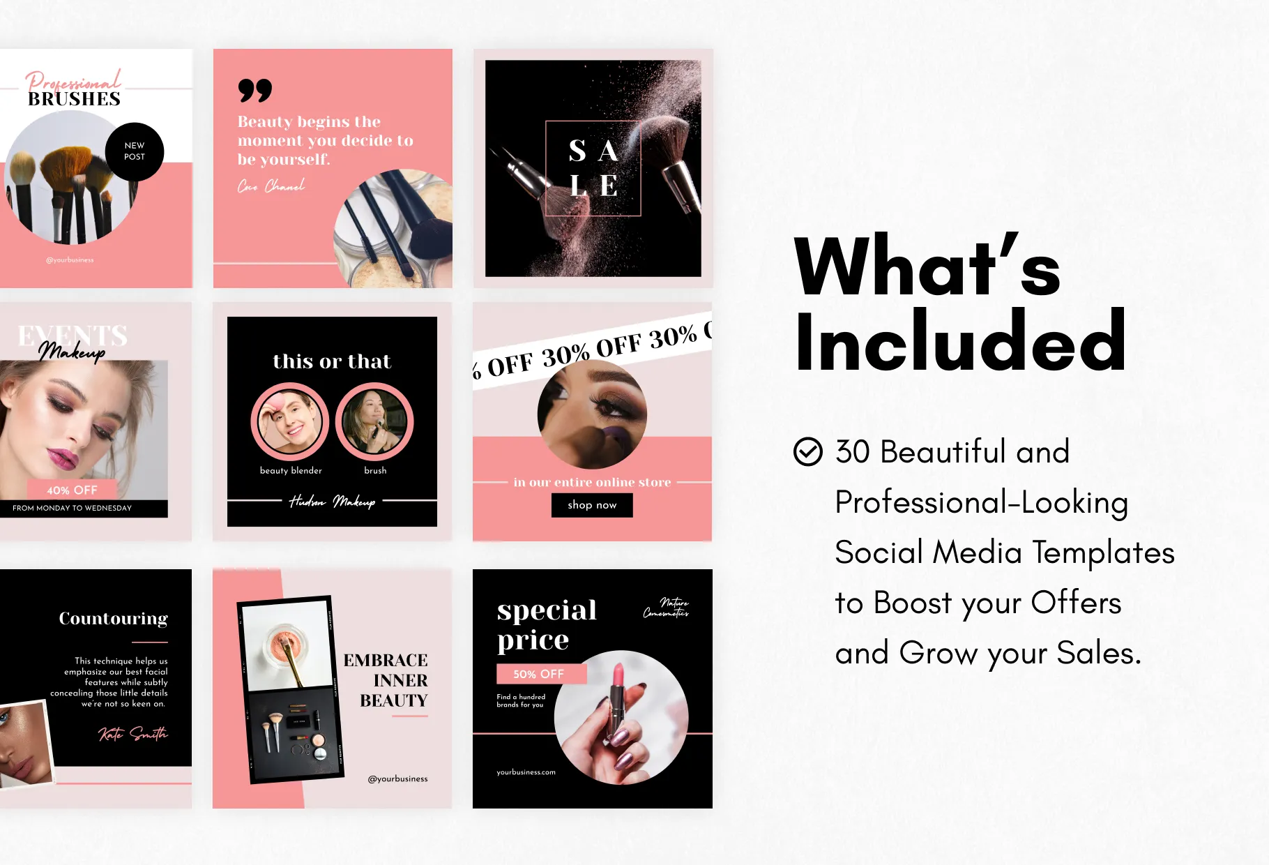 Download this set of pre-designed social media canva templates with real text to help you grow your audience with engagement boosting and share-worthy marketing designs, show up as an authority in your industry, turn followers into paying customers, and give your feed an instant boost while save you time and effort so you don't have to invest time writing or designing content from scratch.