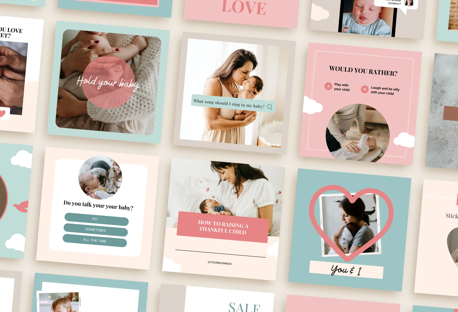 Looking for an engaging way to promote your parenting courses for Mo’s and their babies without spending countless hours or hiring an expensive designer? My 30 Mom and Baby Instagram Post Canva Templates are just the hot ticket you're been missing on the road to maximizing the growth of your Mom & Baby business. Each template has been professionally optimized with high-quality, editorial-style imagery and crafted in a playful and accessible colorway so that you can easily connect with your audience. The best part? My templates come with 100% customizable design features, and this template pack has been specially formulated for parent coaches and Mompreneurs like you, with usable real text. That means you can start boasting scroll-stopping content from the moment you download and show up as an authority in your industry through a well-curated feed. Whether that's promoting your coaching services, or highlighting your local Mom and Baby group classes - then my templates are for you! Don’t leave it to chance, download my 30 Mom and Baby Instagram Post Canva Templates today and watch followers turn into paying clients in no time!