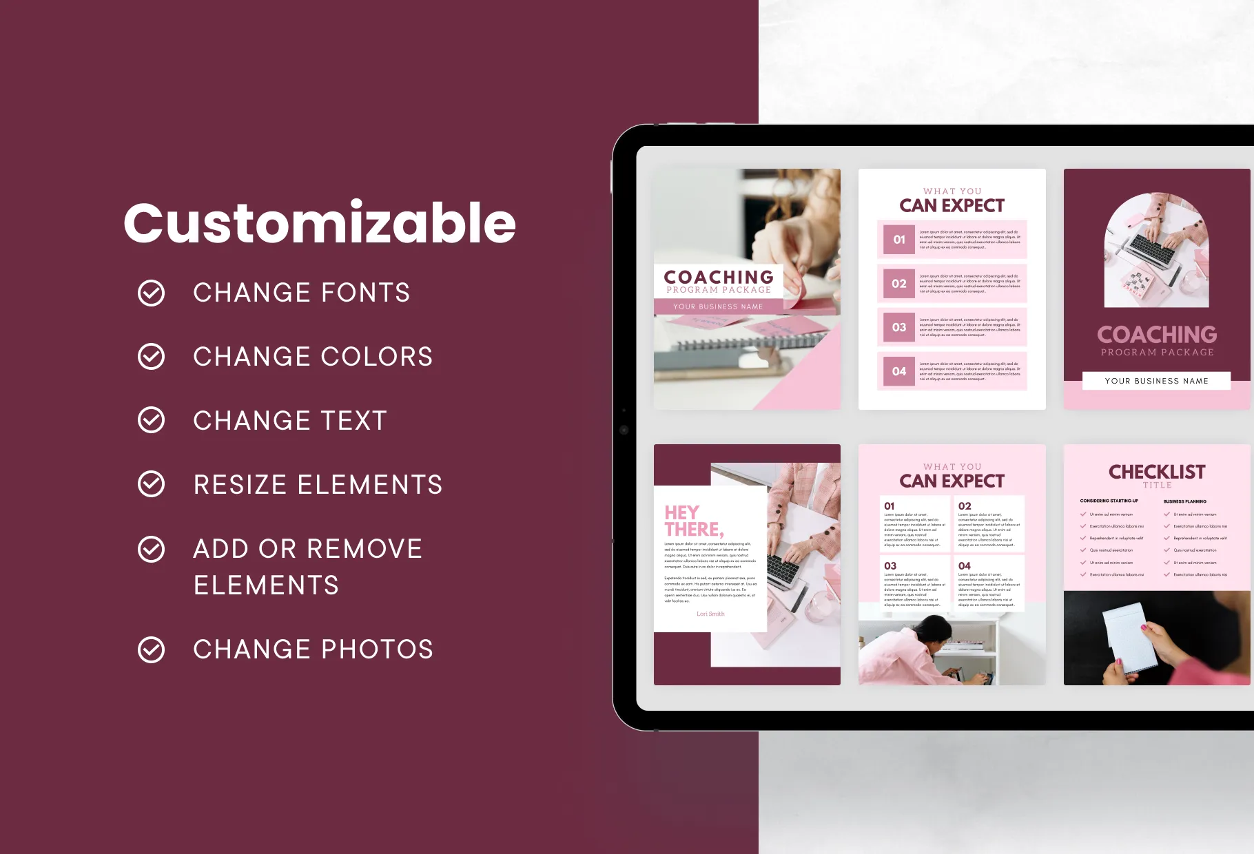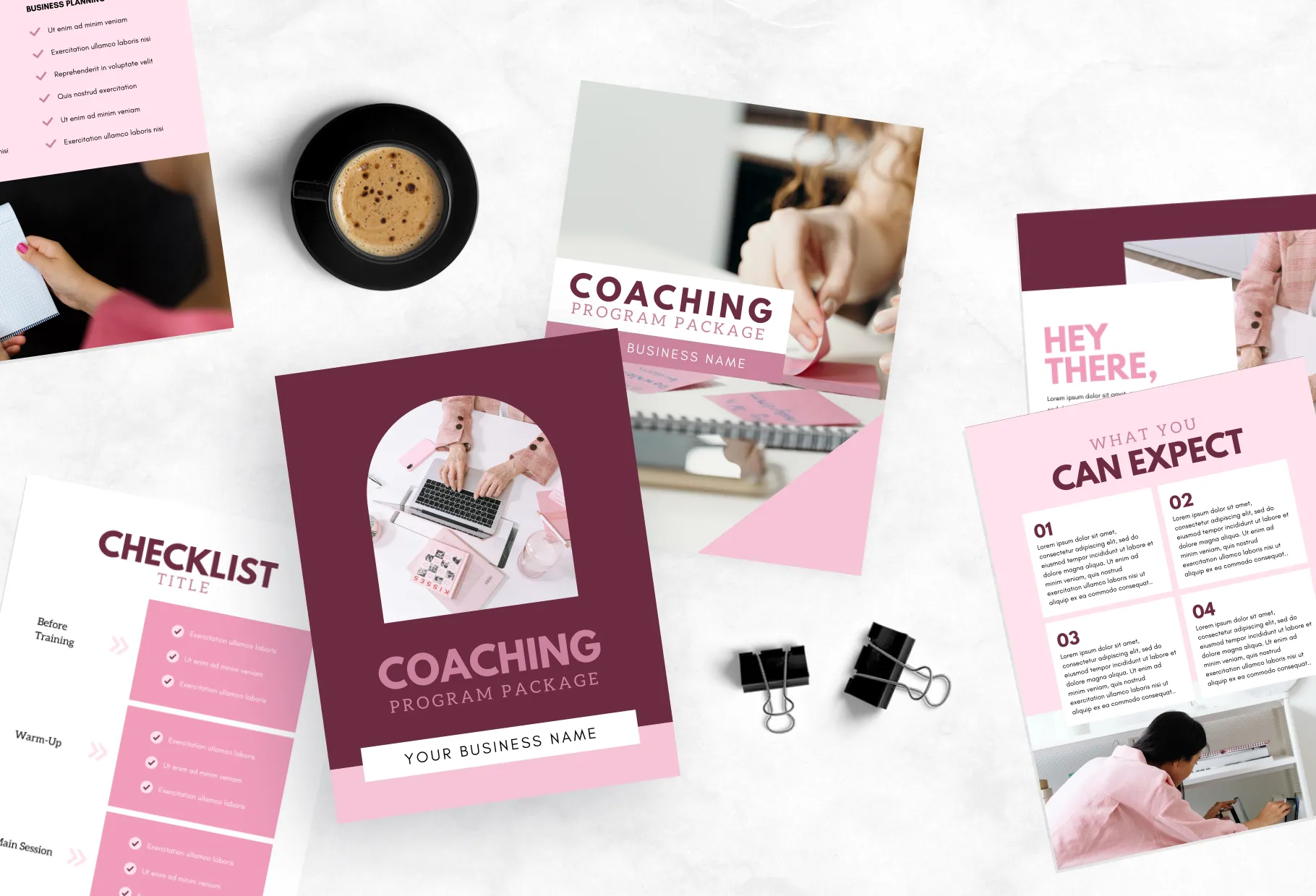 30-Page Coaching Program Package Canva Template Amaranth Style