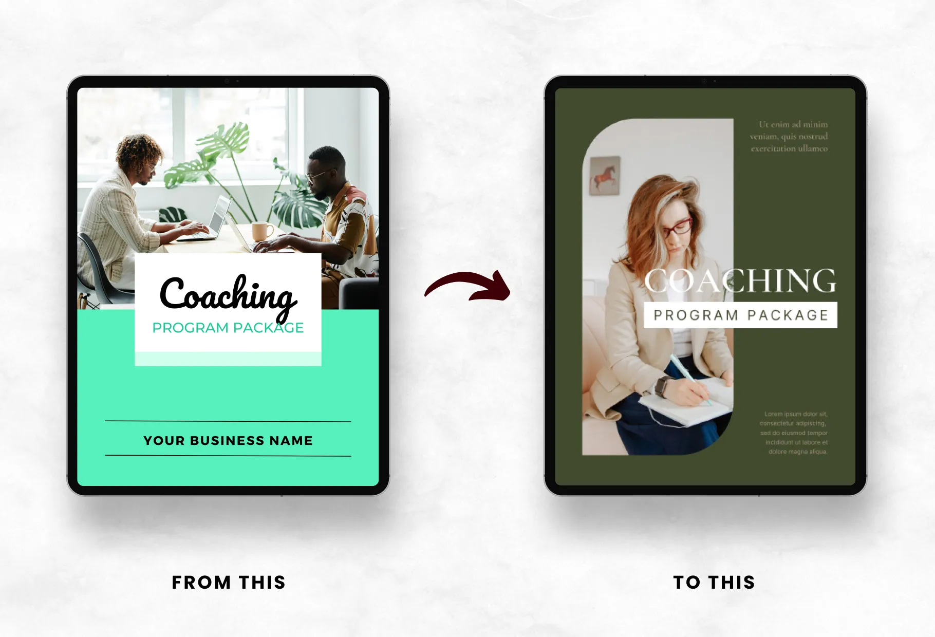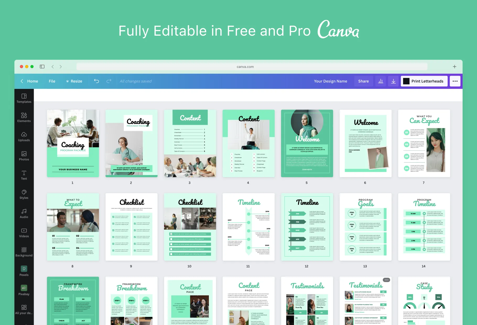 If you're looking to create a successful coaching program, these Canva templates will make your life a whole lot easier. The set includes pages for outlining what clients can expect from your program, timelines, framework breakdowns, case studies, pricing packages, and more. In other words, it has everything you need to get your coaching program off the ground and growing like never before. And because it's all in Canva, you can easily customize the look and feel to match your brand. So why wait? Get started on building your dream coaching business today.