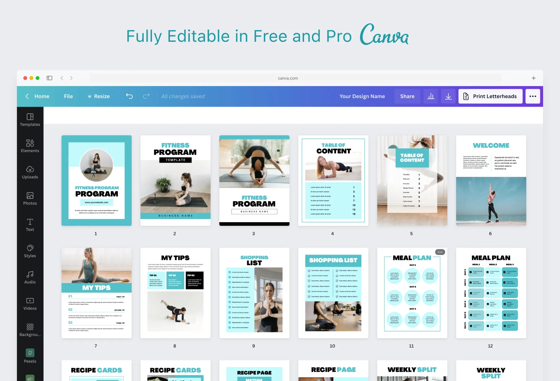 30 Page Fitness Program Template Thailand Editable Canva Templates
