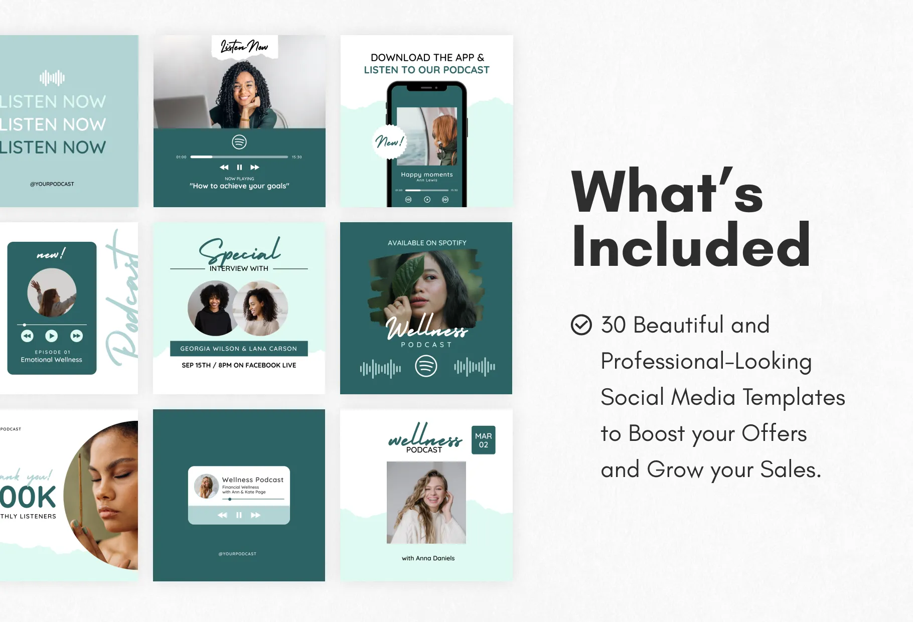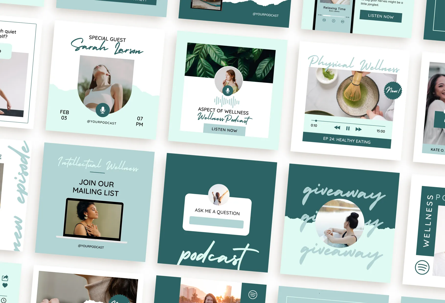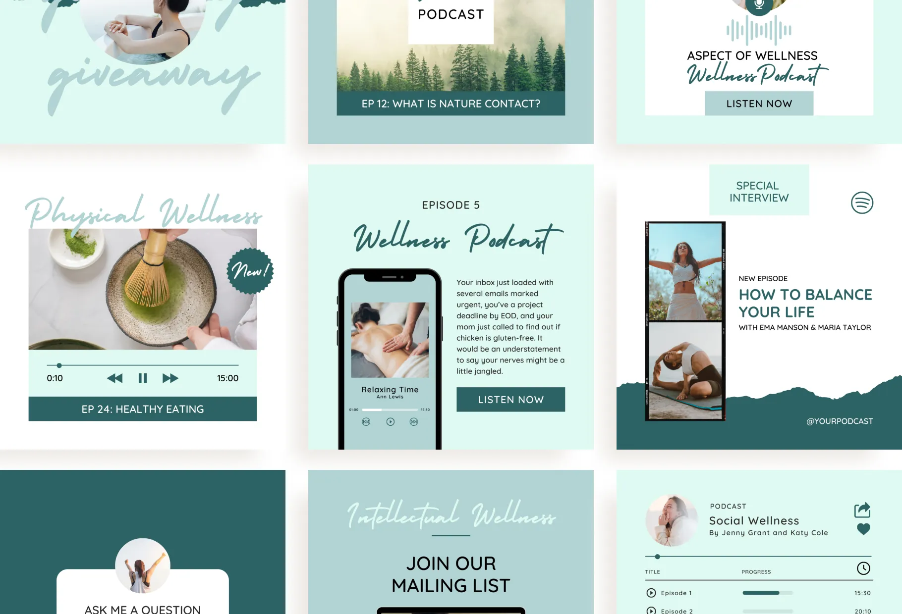 30 Podcast Wellness Instagram Post Canva Templates V2