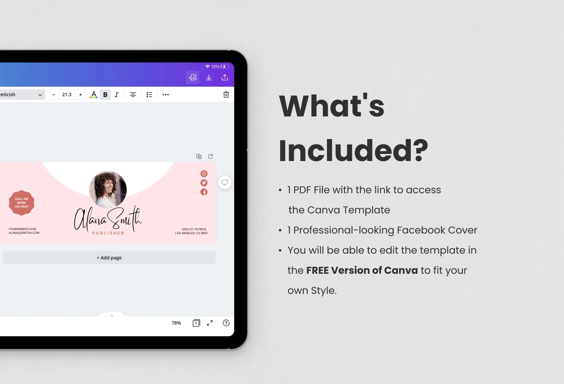 Keep your Facebook page looking fresh and trendy with this new Canva Facebook cover template! Create a beautiful and professional-looking Facebook Cover for your business in just minutes. Go from basic to awesome by using this easy-to-use design that you can customize in no time, without any graphic skills. Instantly boost your social media presence with this beautiful Facebook Cover for Canva.