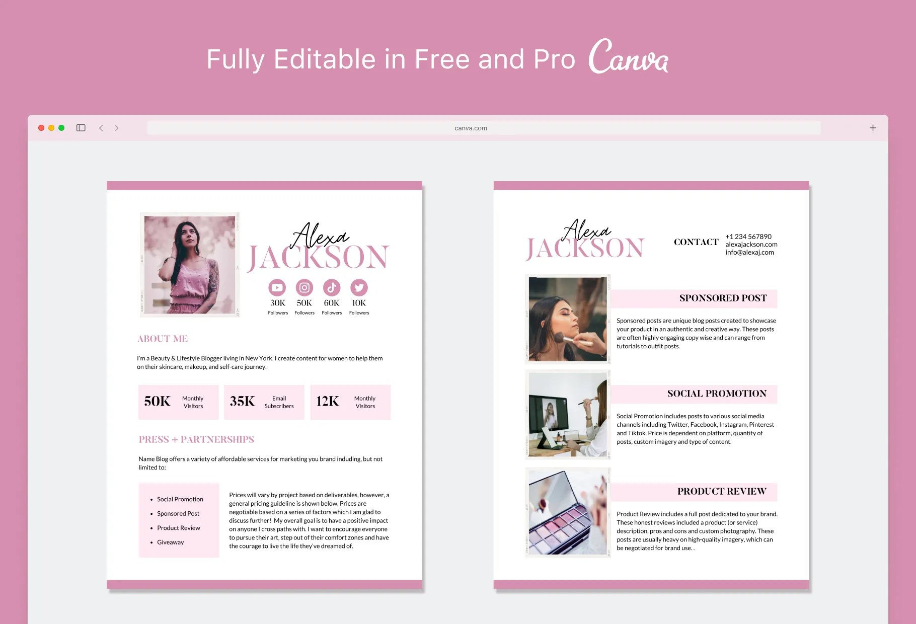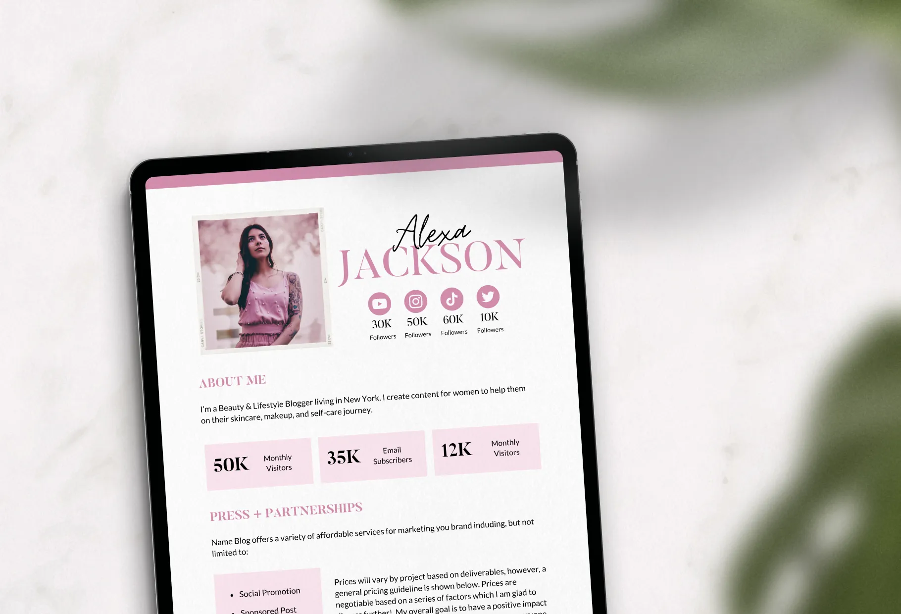 Do you have a blog, podcast or YouTube channel? If so, then you know how important it is to market yourself and your content. But creating Media Kits can be time-consuming and difficult. That’s why I created this beautiful media kit template for influencers. It’s easy to customize with Canva, making it the perfect tool for any business owner who wants to stand out from their competitors. Download Now.