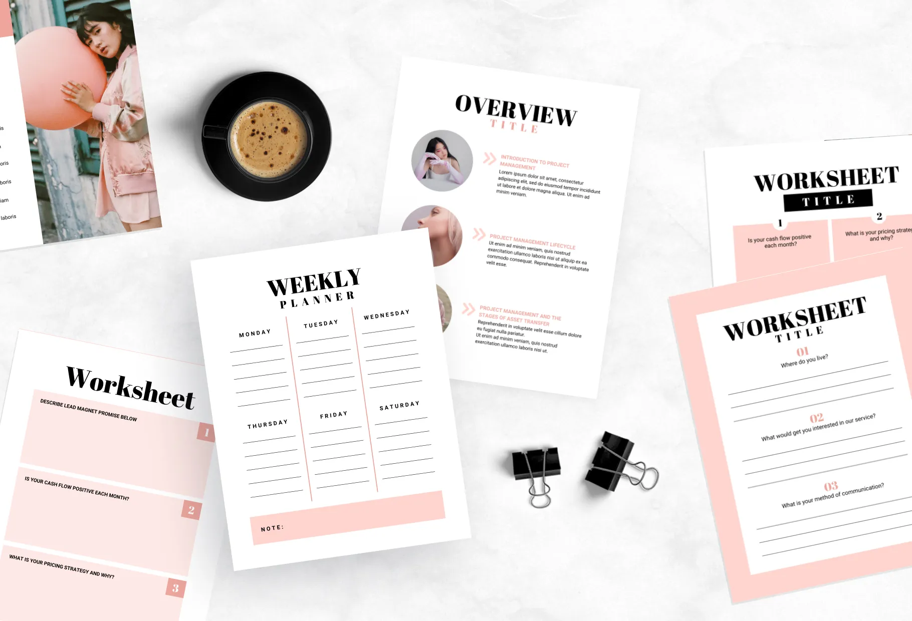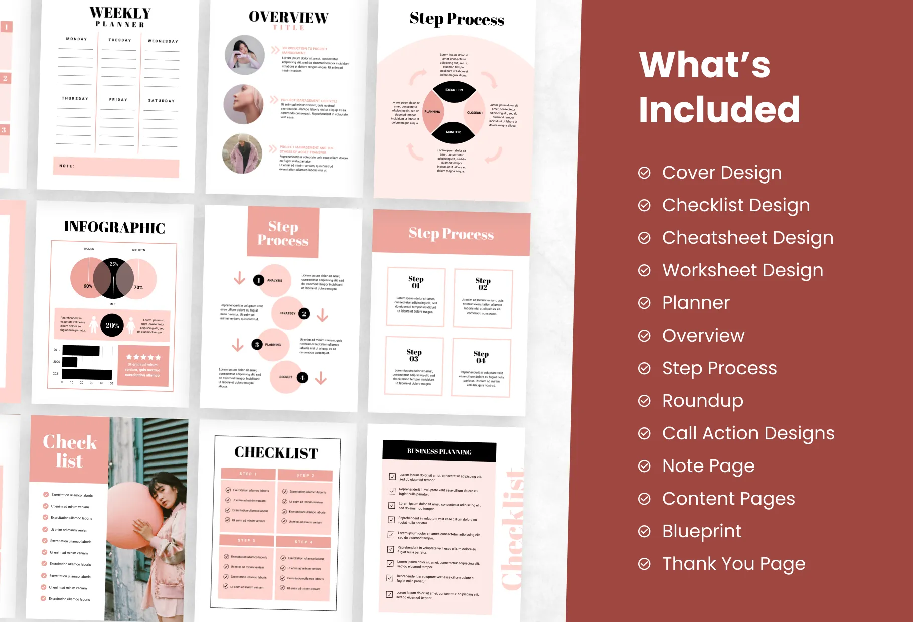 The Only Thing Standing Between YOU and YOUR EMAIL LIST … is a LEAD MAGNET! This Lead Magnet Template Bundle is perfect for anyone looking to grow their online business. Whether you're a blogger, coach, consultant, or any other type of small-business owner - this lead magnet bundle has been designed with YOU in mind! WHAT'S INCLUDED: 4 Cover Design 3 Checklist Design 3 Cheatsheet Design 3 Worksheet Design Planner Overview Step Process Roundup 2 Call Action Designs Note Page 3 Content Pages Blueprint Thank You Page