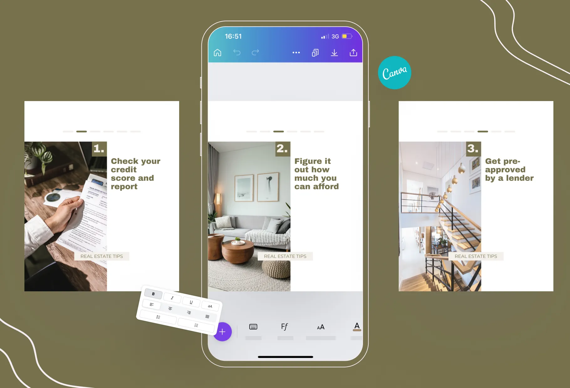 After purchasing the templates, all you need to do is create a Canva account either on your mobile device or computer. There, you will be able to access all of the Canva templates you purchased and edit them accordingly.