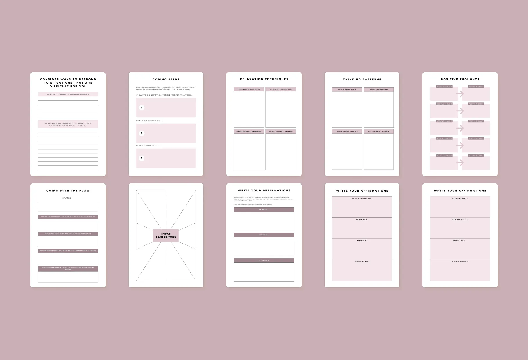 Are you an introvert searching for some peace of mind? Or a therapist and counselor looking for the tools to help your introverted clients cope? Look no further than my Being an Introvert Journal! This specialized planner was specifically made with introverts in need of self-soothing and coping mechanisms. With special pages designed to reduce stress, let go of control, boost positive thinking through affirmations, and more – this journal has everything an introvert could need. And because it was created using Canva, you can easily customize it to fit your unique perspective and needs. Add motivational images, extra pages of insights, and make this journal more personal. Download it as a pdf to use it digitally or print it out if you prefer handwriting the entries. Use this and start regaining control over your thoughts. Self-Soothing Skills Coping Skills Consider Ways to Respond to Situations That Are Difficult For You Coping Steps Relaxation Techniques Thinking Patterns Positive Thoughts Going With The Flow Things I Can Control Write Your Affirmations Stop Negative Self-Talk