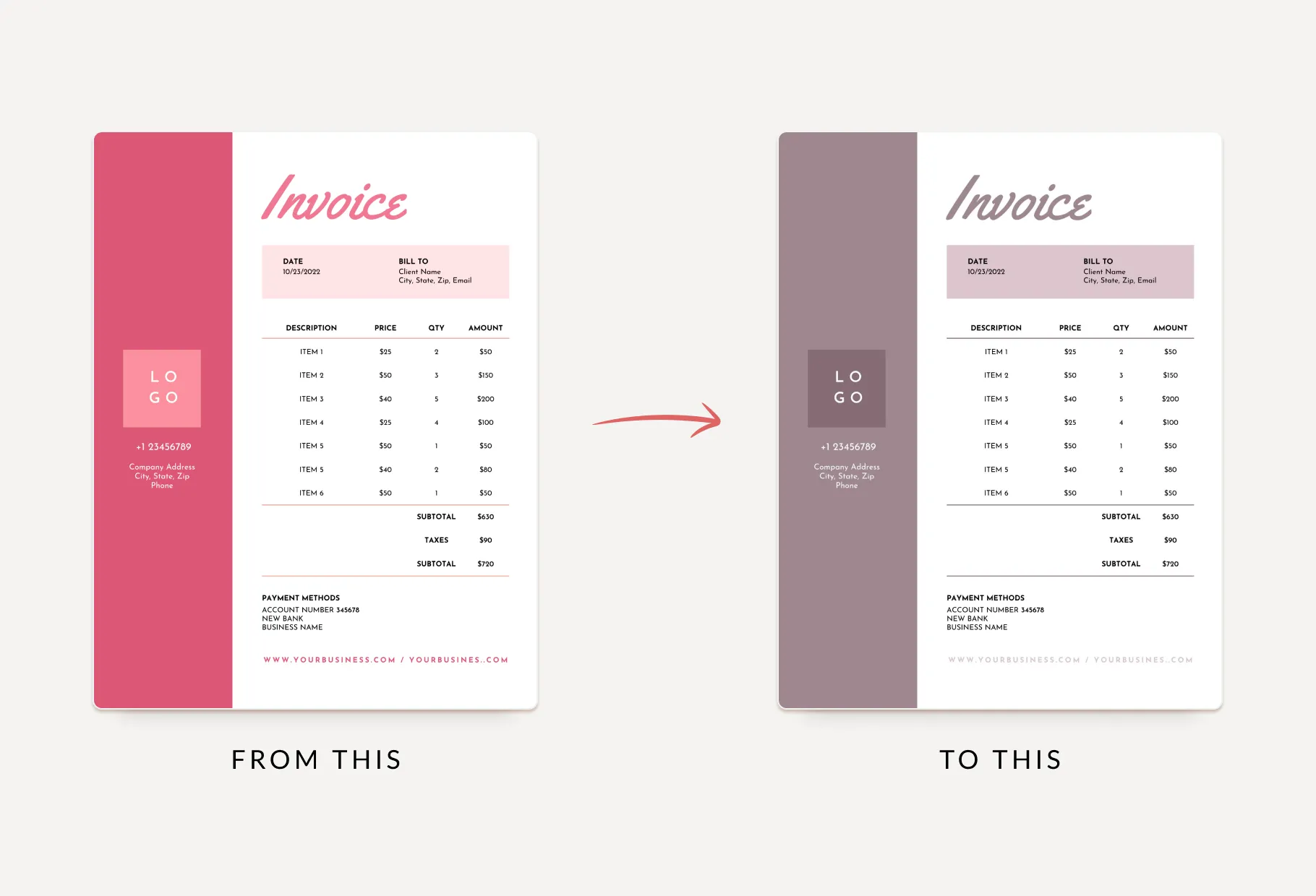 Invoices are an essential part of running a business, but they don't have to be boring. With this Invoice Canva template you can create your own custom invoices that are both professional and eye-catching. With just a few clicks, you can add your logo, contact information, and even a personal message. Plus, it's fully compatible with Canva's easy-to-use design tools, so you can easily make any further changes or adjustments that you need. So why not download this Printable and Editable Invoice Template for CANVA now and start making a great impression with your clients today?