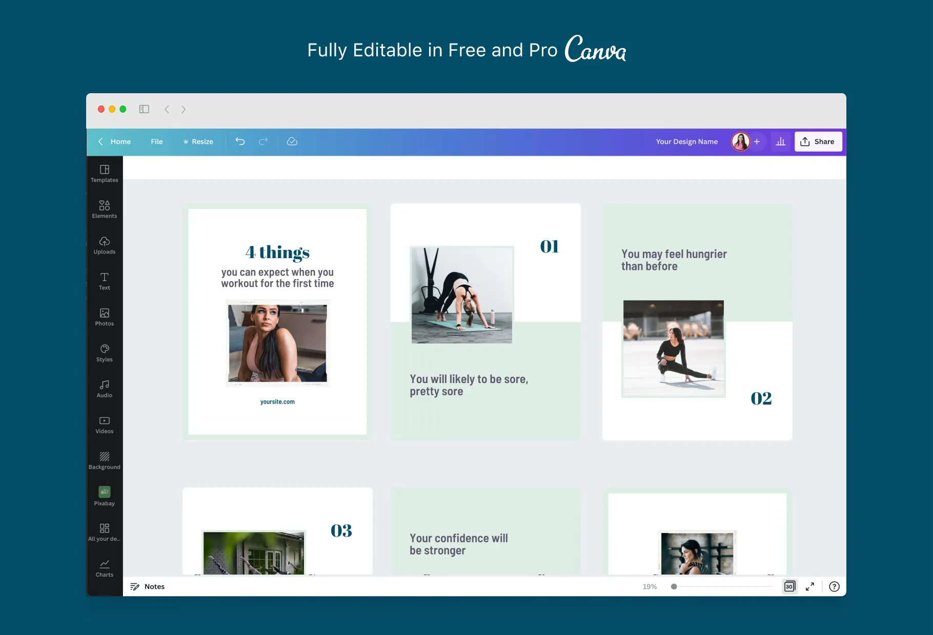 Brielle Fitness 6-Page Carousel Canva Template