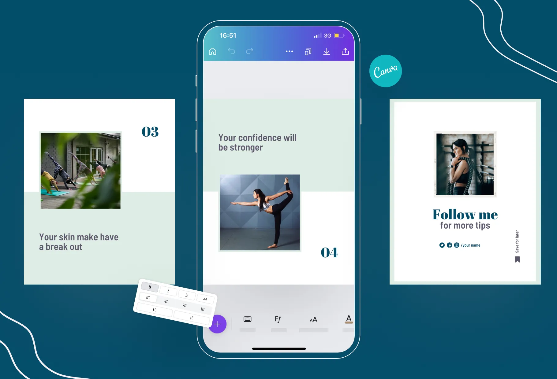 Download this set of pre-designed social media canva templates with real text to help you grow your audience with engagement boosting and share-worthy marketing designs, show up as an authority in your industry, turn followers into paying customers, and give your feed an instant boost while save you time and effort so you don't have to invest time writing or designing content from scratch.