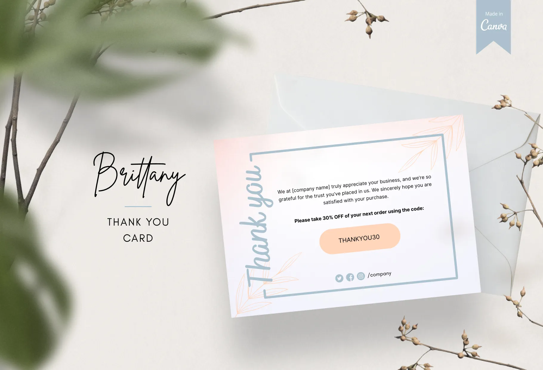 Brittany Printable Thank You Card Packaging Insert Note Canva Template