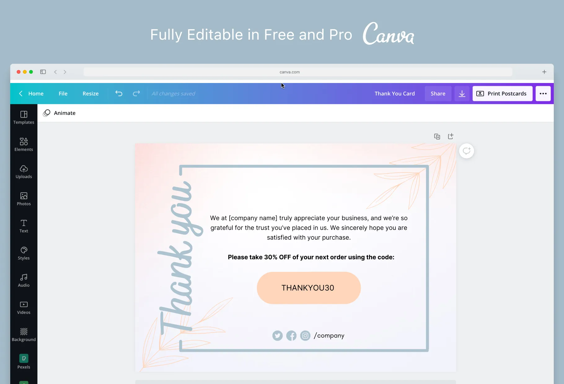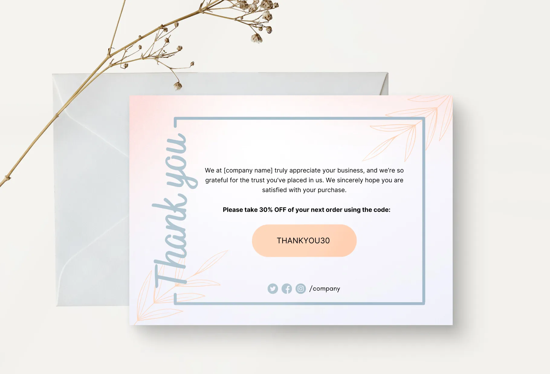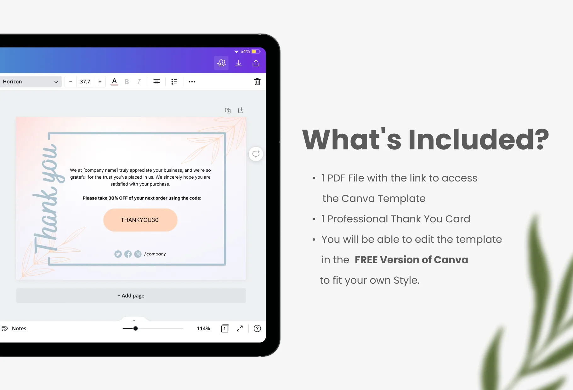 Thank You Cards are the best way to keep your customers coming back for more! Most sellers are too busy running their businesses to take time out for sending thank-you cards after every sale. A small gesture like sending a thank you card can make all the difference in how your customer feels about their purchase, and if they'll return again! This is especially important when selling online or on marketplaces where it's harder to build trust and rapport with buyers. Inserting a Thank you Card is a great way to show that you care about them and their experience with your business. But, designing the perfect card can be hard! This printable template will save you hours of time – just download the template file, import it to your free Canva account, fill in the blanks, add your logo, customize colors, fonts, or text styles without hiring someone else to do it for you! - It's super easy even if you don't have graphic design skills! Encourage repeat sales with this professional-looking thank you card for CANVA. This listing is for the digital files only*** No physical product will be sent.