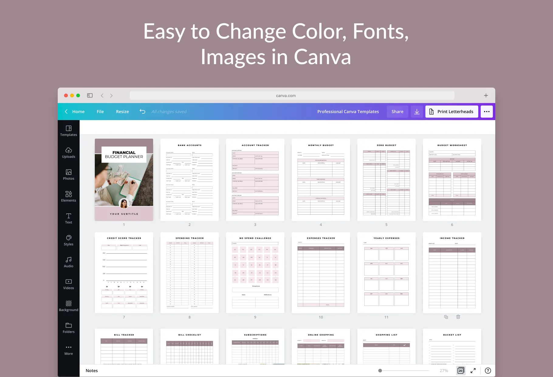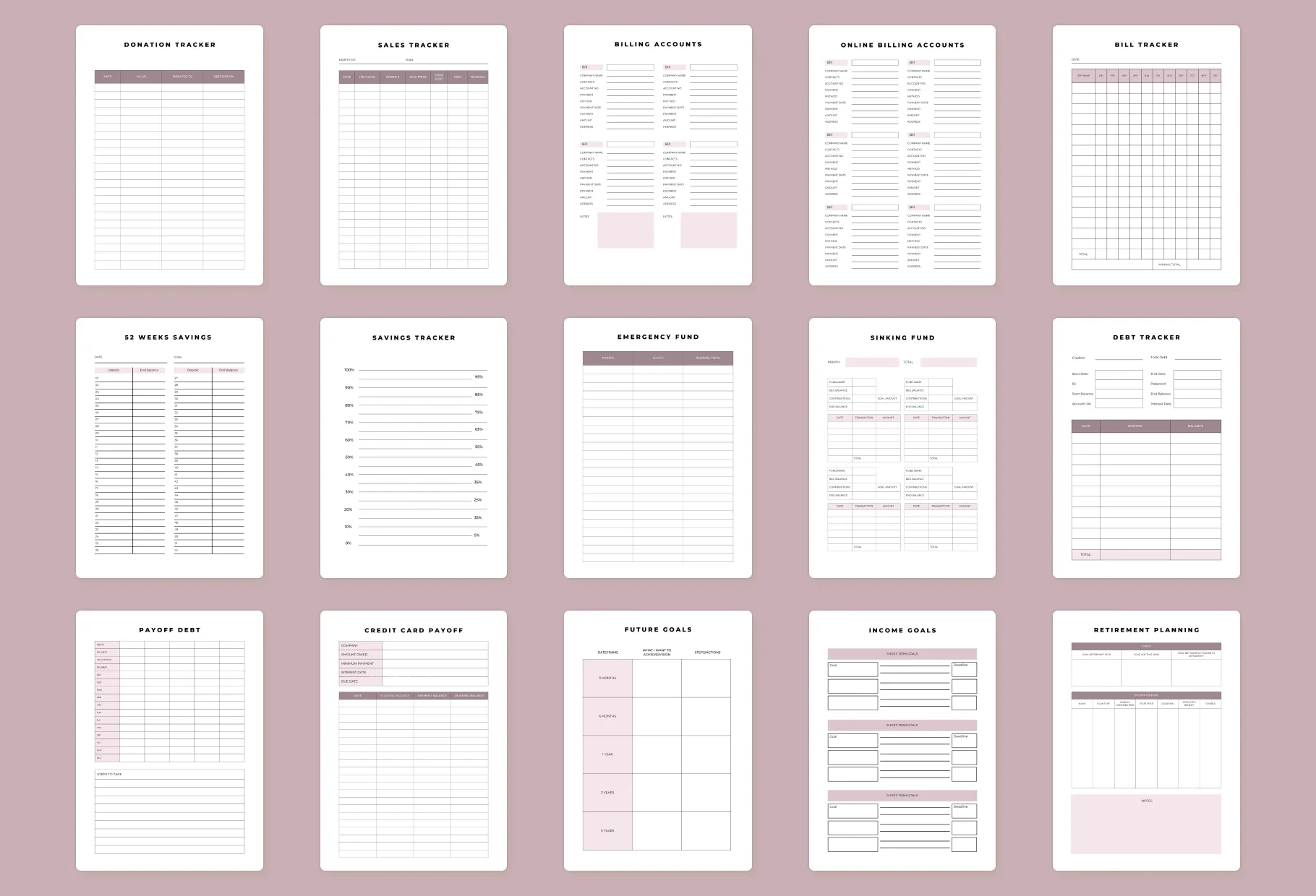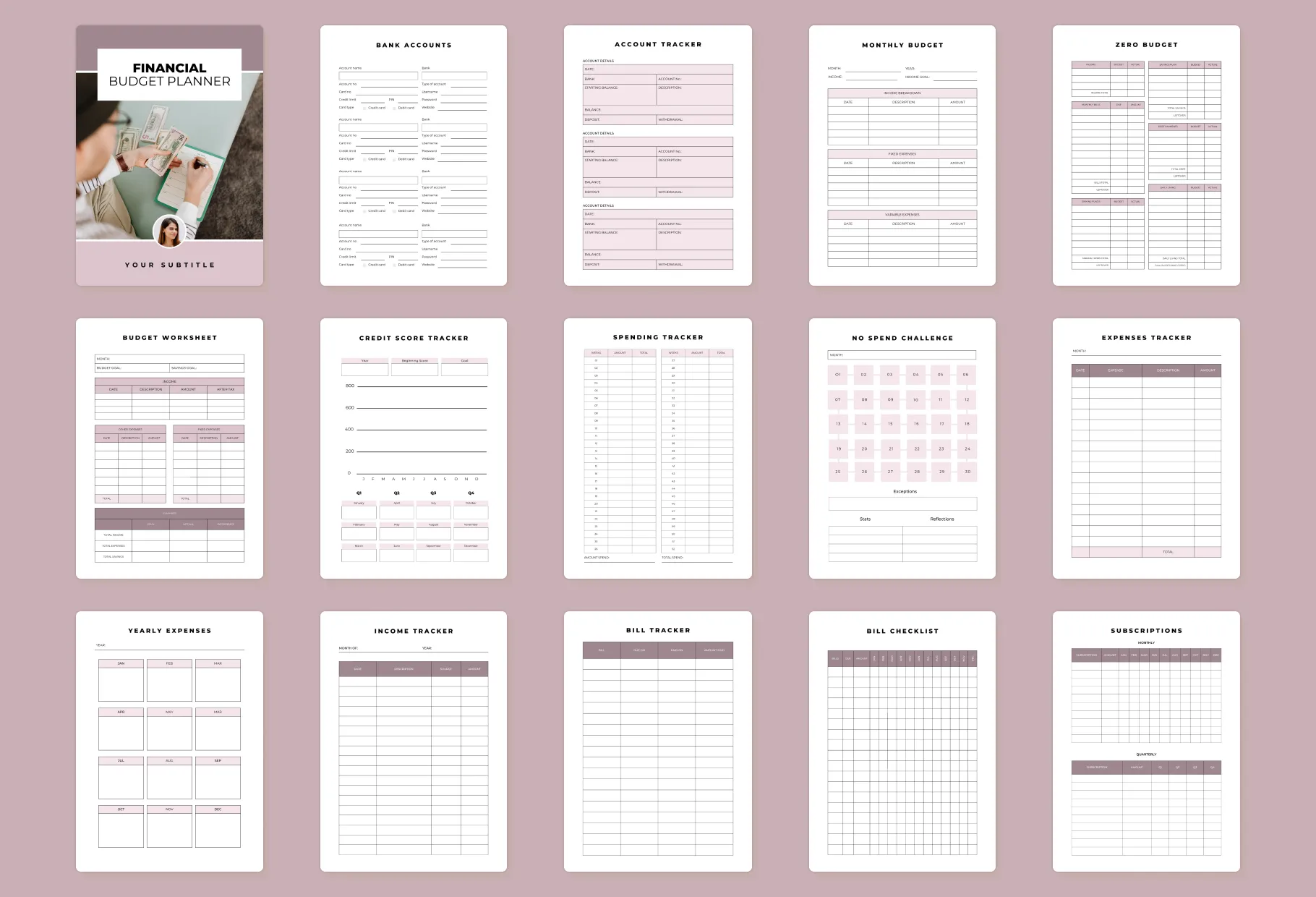 Ever felt overwhelmed by your finances? Trust me, I've been there. That's why I crafted this Budget Planner Canva Template – to help streamline and simplify the world of personal finance. Juggling multiple bills, tracking every penny, and planning for the future can be a chaotic experience. Without a clear system, it's easy to lose sight of where your money is going. Imagine missing a bill payment, forgetting about a subscription, or realizing too late that you've overspent for the month. These missteps can lead to extra fees, dings on your credit score, or even a compromised financial future. That's where my Budget Planner Canva Template comes in. With pages tailored to every aspect of personal finance, from "Monthly Budget" to "Retirement Planning," this template will help bring order to the chaos. Whether you're tracking your "Credit Score" or planning a "No Spend Challenge," everything has its place. So, why not give yourself a financial makeover? Download my template and start taking charge of your money today. Who can benefit from this template? Students trying to manage their finances for the first time Families working on a collective budget Entrepreneurs monitoring their profit and loss Freelancers tracking various income streams Anyone looking to get a comprehensive overview of their financial world Your finances shouldn't be a source of stress. With my Budget Planner Canva Template, you'll have a clearer path towards financial freedom. Don't wait, dive in and see the difference it makes! Bank Account Account Tracker Monthly Budget Zero Budget Budget Worksheet Credit Score Tracker Spending Tracker No Spend Challenge Expenses Tracker Yearly Expenses Income Tracker Bill Tracker Bill Checklist Subscriptions Online Shopping Shopping List Bucket List Family Budget Weekly Expenses Annual Overview Upcoming Expenses Financial Calendar Fixed Expenses Variable Expenses Profit and Loss Finance Tracker Financial Summary Tax Deductions Donation Tracker Sales Tracker Bill Tracker Savings Tracker Emergency Fund Payoff Debt Retirement Planning