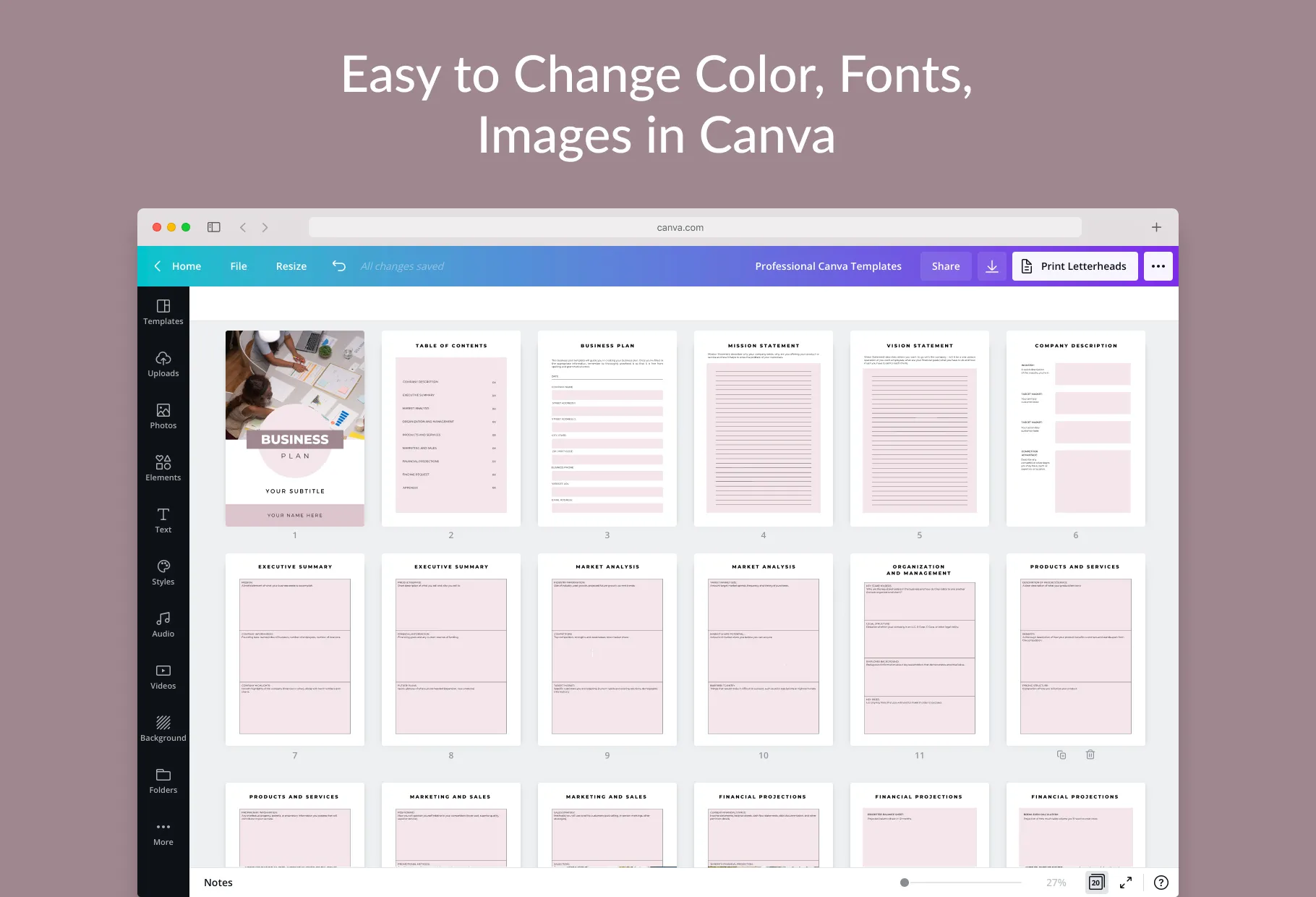 The best part is that you don’t need any special software in order to use Canva. The website is available as an app for Android and Apple devices, as well as an app for Windows and iOS computers, making it easier than ever to make your templates into something that will make your business visuals go from mediocre to mind blowing. In fact, over 70% of marketers use visuals in their marketing strategy, which is why we tried to make it as easy and accessible as possible to use our templates.