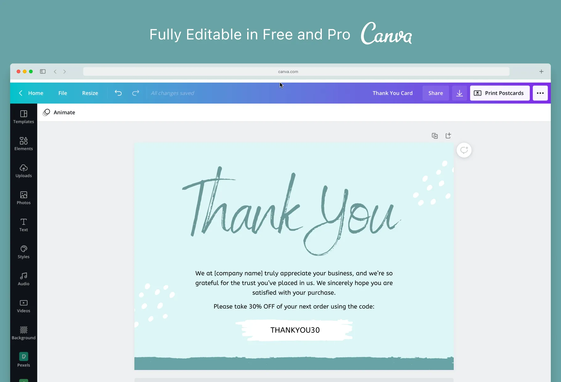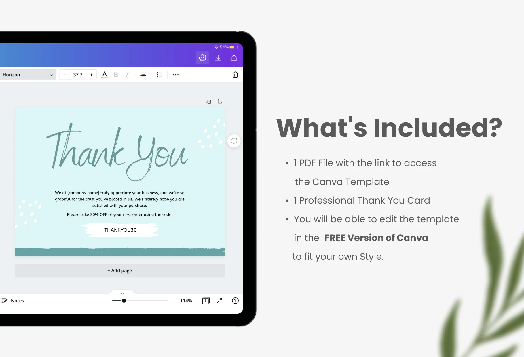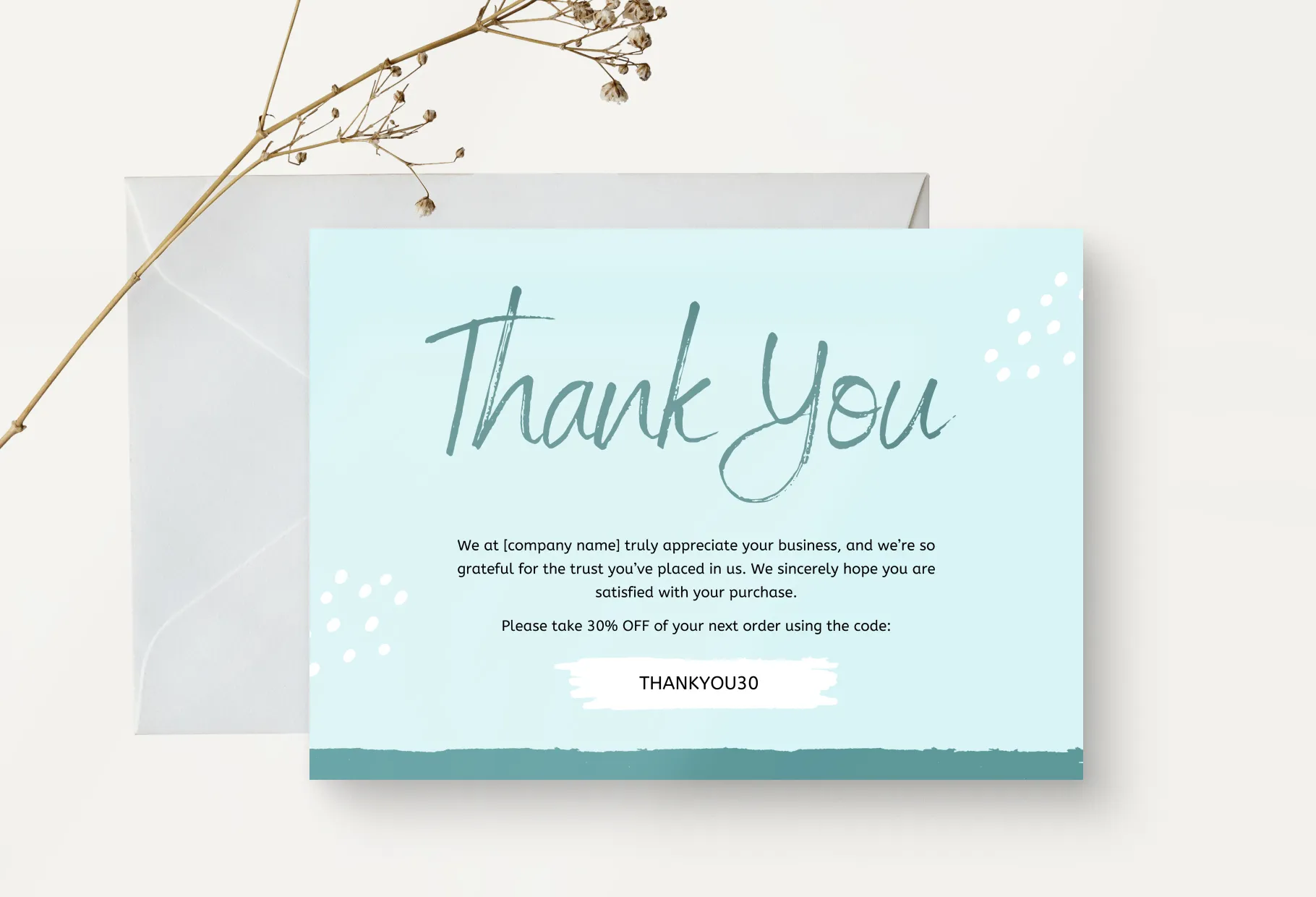 Thank You Cards are the best way to keep your customers coming back for more! Most sellers are too busy running their businesses to take time out for sending thank-you cards after every sale. A small gesture like sending a thank you card can make all the difference in how your customer feels about their purchase, and if they'll return again! This is especially important when selling online or on marketplaces where it's harder to build trust and rapport with buyers. Inserting a Thank you Card is a great way to show that you care about them and their experience with your business. But, designing the perfect card can be hard! This printable template will save you hours of time – just download the template file, import it to your free Canva account, fill in the blanks, add your logo, customize colors, fonts, or text styles without hiring someone else to do it for you! - It's super easy even if you don't have graphic design skills! Encourage repeat sales with this professional-looking thank you card for CANVA. This listing is for the digital files only*** No physical product will be sent.
