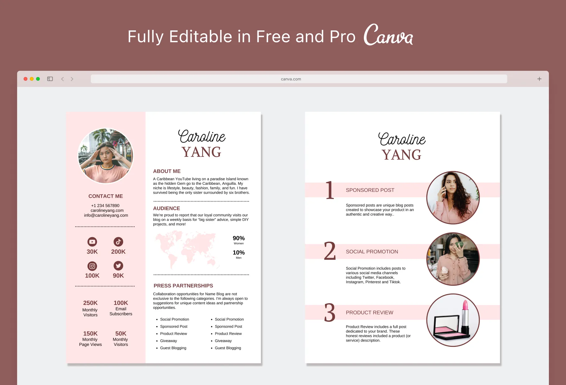 Do you have a blog, podcast or YouTube channel? If so, then you know how important it is to market yourself and your content. But creating Media Kits can be time-consuming and difficult. That’s why I created this beautiful media kit template for influencers. It’s easy to customize with Canva, making it the perfect tool for any business owner who wants to stand out from their competitors. Download Now.