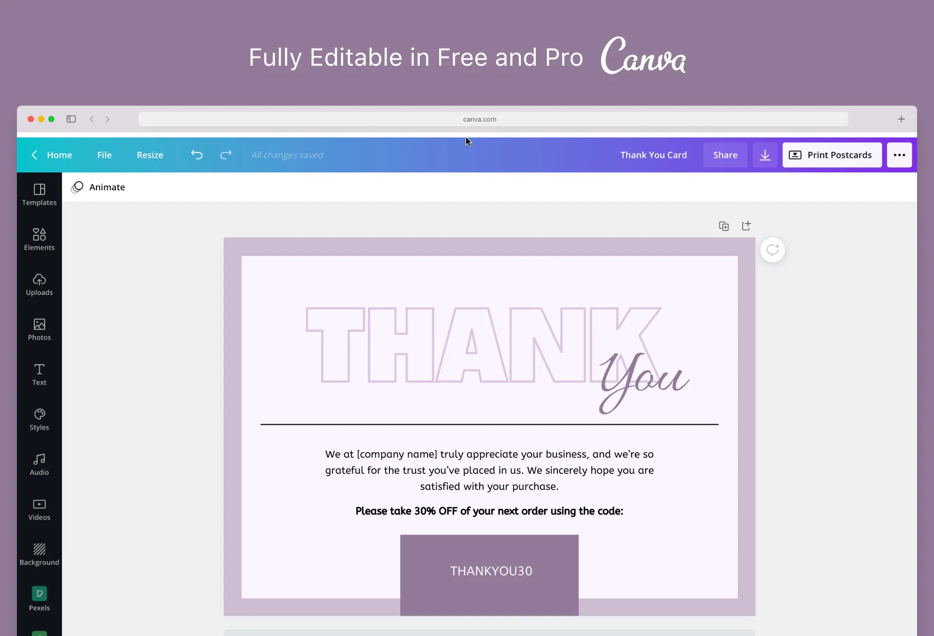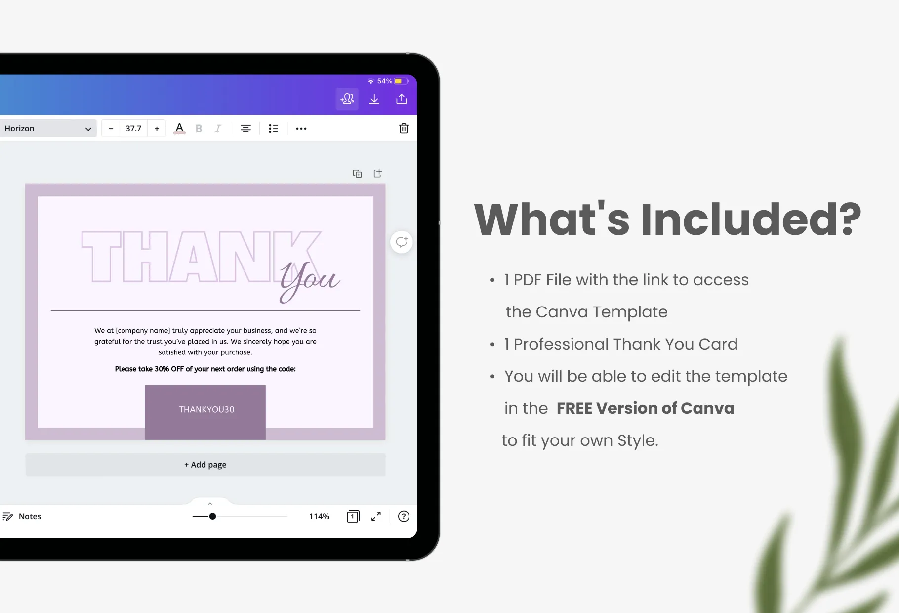Thank You Cards are the best way to keep your customers coming back for more! Most sellers are too busy running their businesses to take time out for sending thank-you cards after every sale. A small gesture like sending a thank you card can make all the difference in how your customer feels about their purchase, and if they'll return again! This is especially important when selling online or on marketplaces where it's harder to build trust and rapport with buyers. Inserting a Thank you Card is a great way to show that you care about them and their experience with your business. But, designing the perfect card can be hard! This printable template will save you hours of time – just download the template file, import it to your free Canva account, fill in the blanks, add your logo, customize colors, fonts, or text styles without hiring someone else to do it for you! - It's super easy even if you don't have graphic design skills! Encourage repeat sales with this professional-looking thank you card for CANVA. This listing is for the digital files only*** No physical product will be sent.