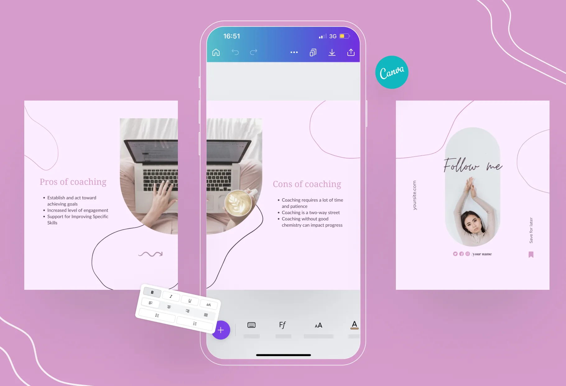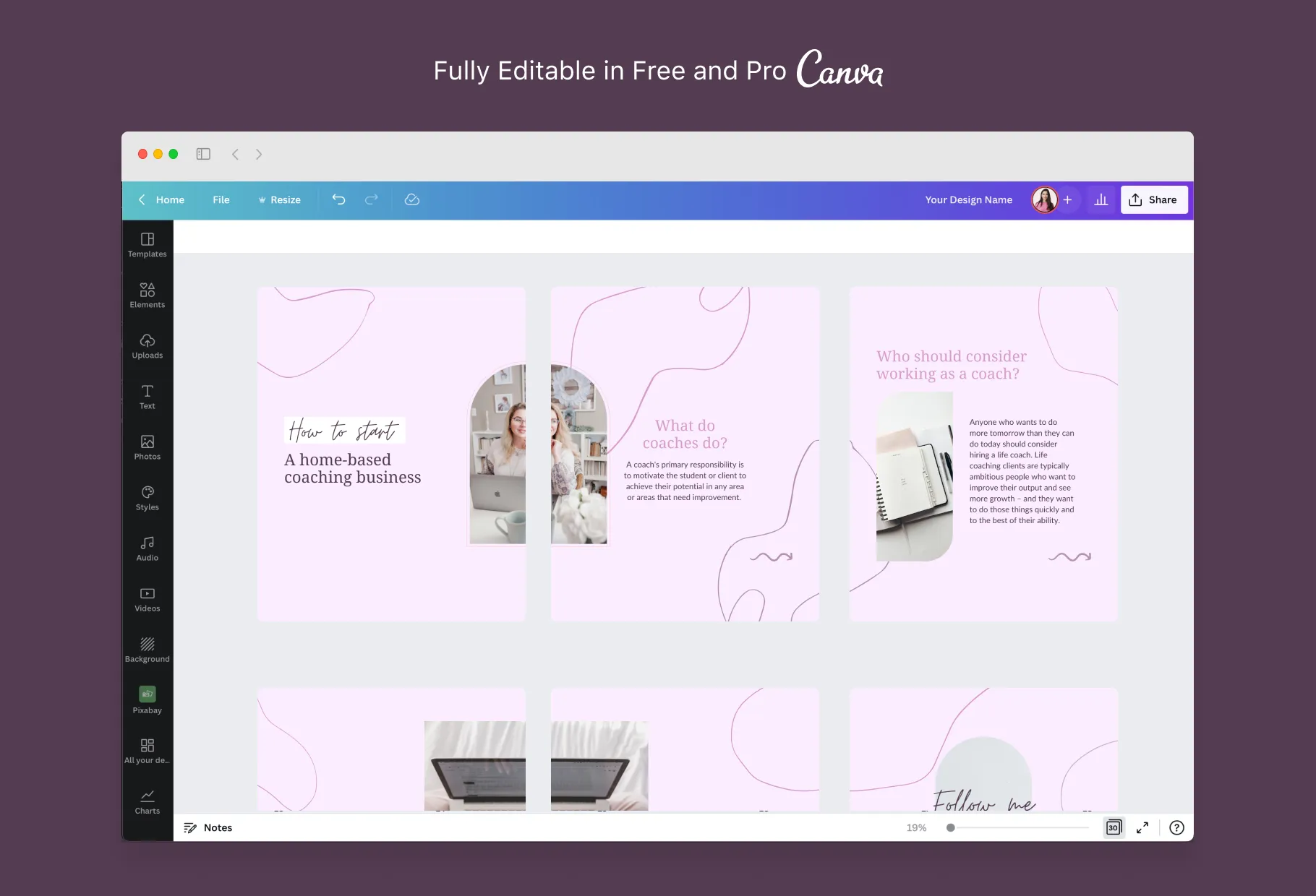 After purchasing the templates, all you need to do is create a Canva account either on your mobile device or computer. There, you will be able to access all of the Canva templates you purchased and edit them accordingly.