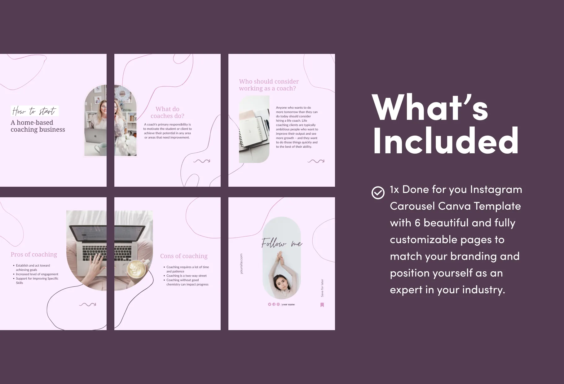 Download this set of pre-designed social media canva templates with real text to help you grow your audience with engagement boosting and share-worthy marketing designs, show up as an authority in your industry, turn followers into paying customers, and give your feed an instant boost while save you time and effort so you don't have to invest time writing or designing content from scratch.