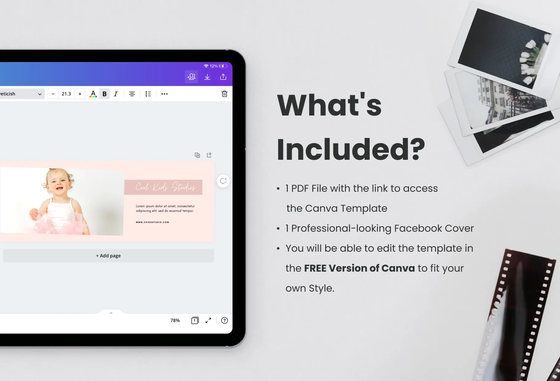 Cool Kids Studios Facebook Cover for Photographers Editable Canva Template