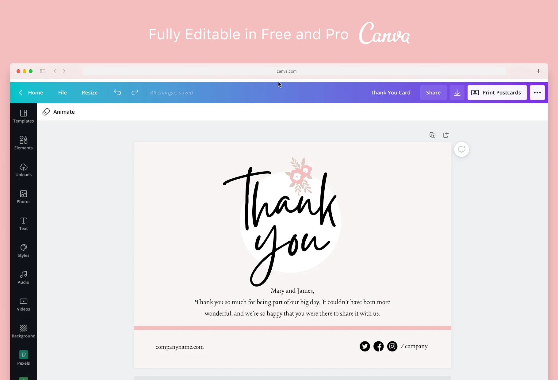 Cristina Printable Thank You Card Packaging Insert Note Canva Template