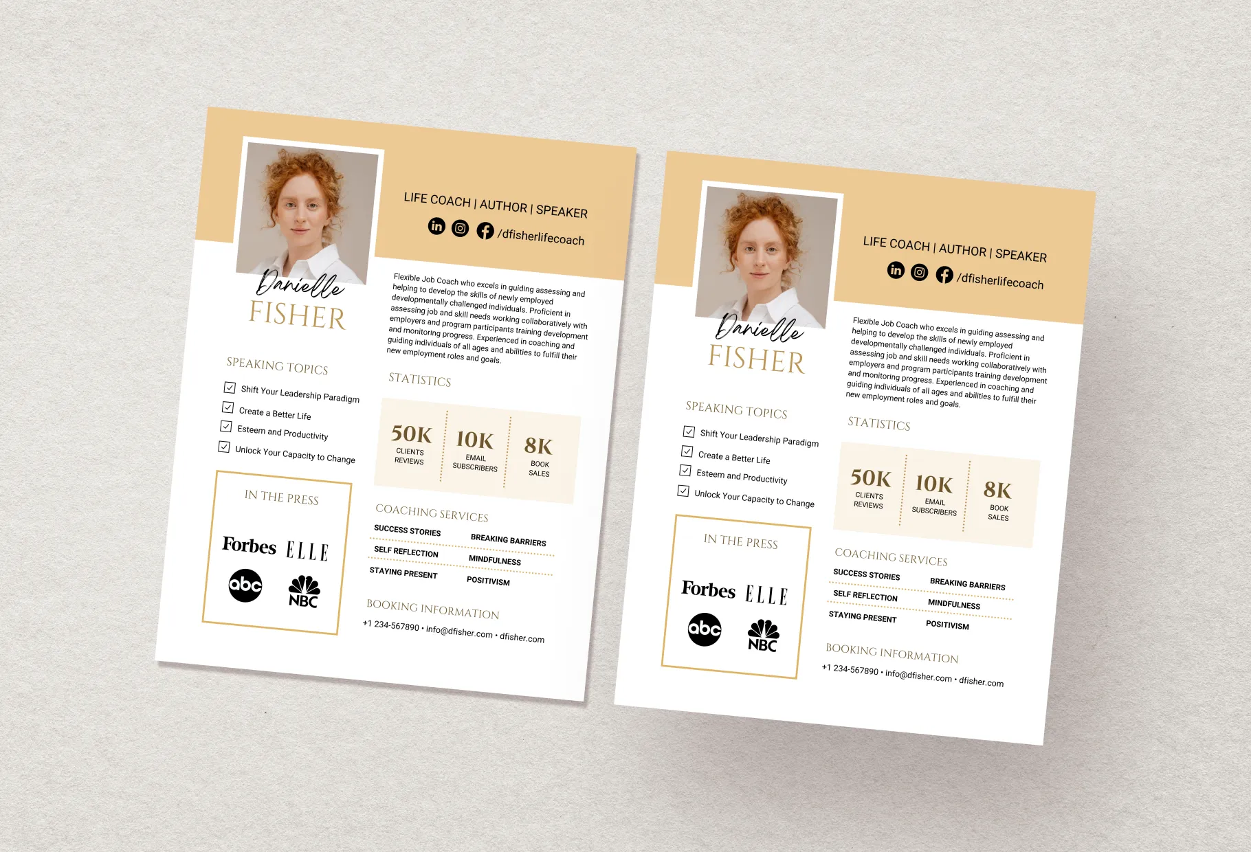 Danielle Speaker One-Sheet Canva Template