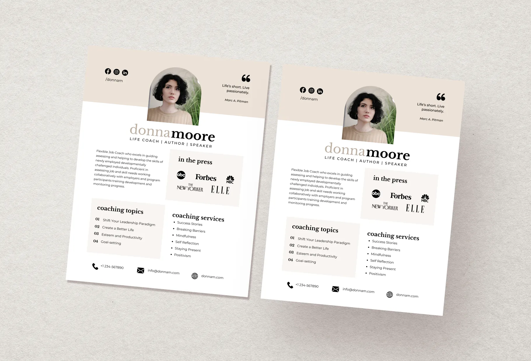 Donna Speaker One-Sheet Canva Template