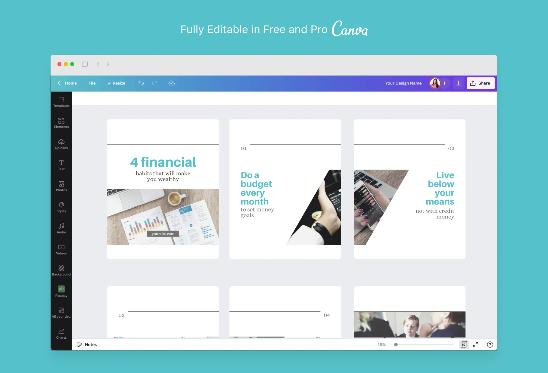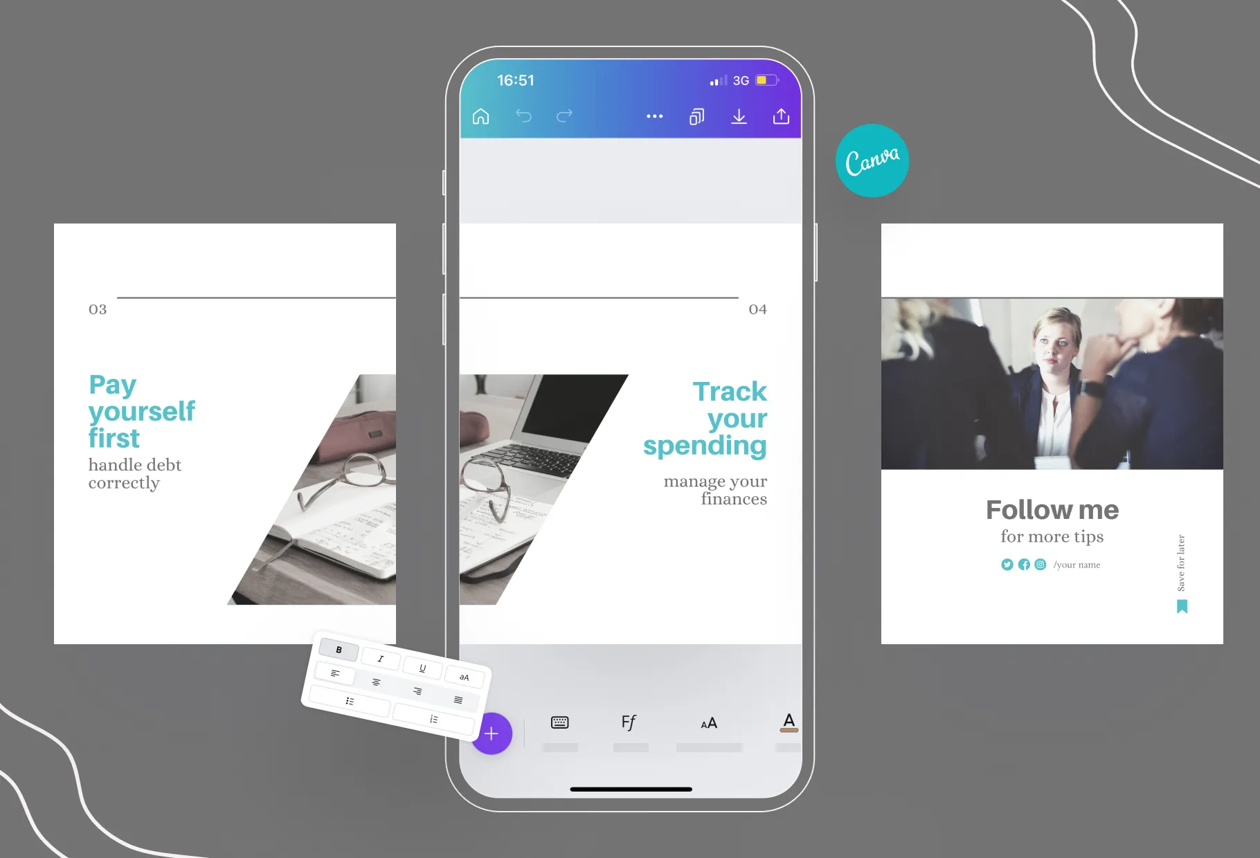 After purchasing the templates, all you need to do is create a Canva account either on your mobile device or computer. There, you will be able to access all of the Canva templates you purchased and edit them accordingly.