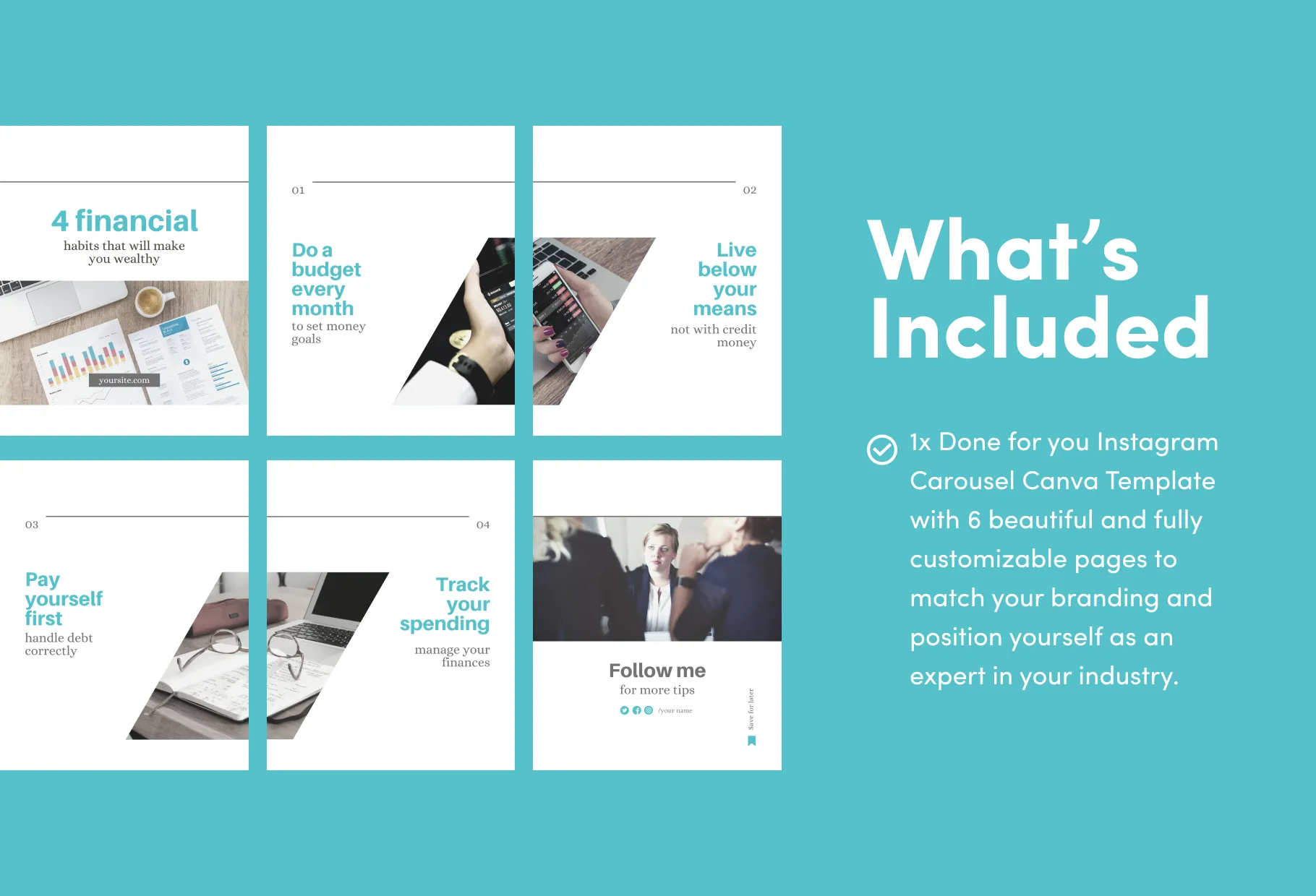 Download this set of pre-designed social media canva templates with real text to help you grow your audience with engagement boosting and share-worthy marketing designs, show up as an authority in your industry, turn followers into paying customers, and give your feed an instant boost while save you time and effort so you don't have to invest time writing or designing content from scratch.