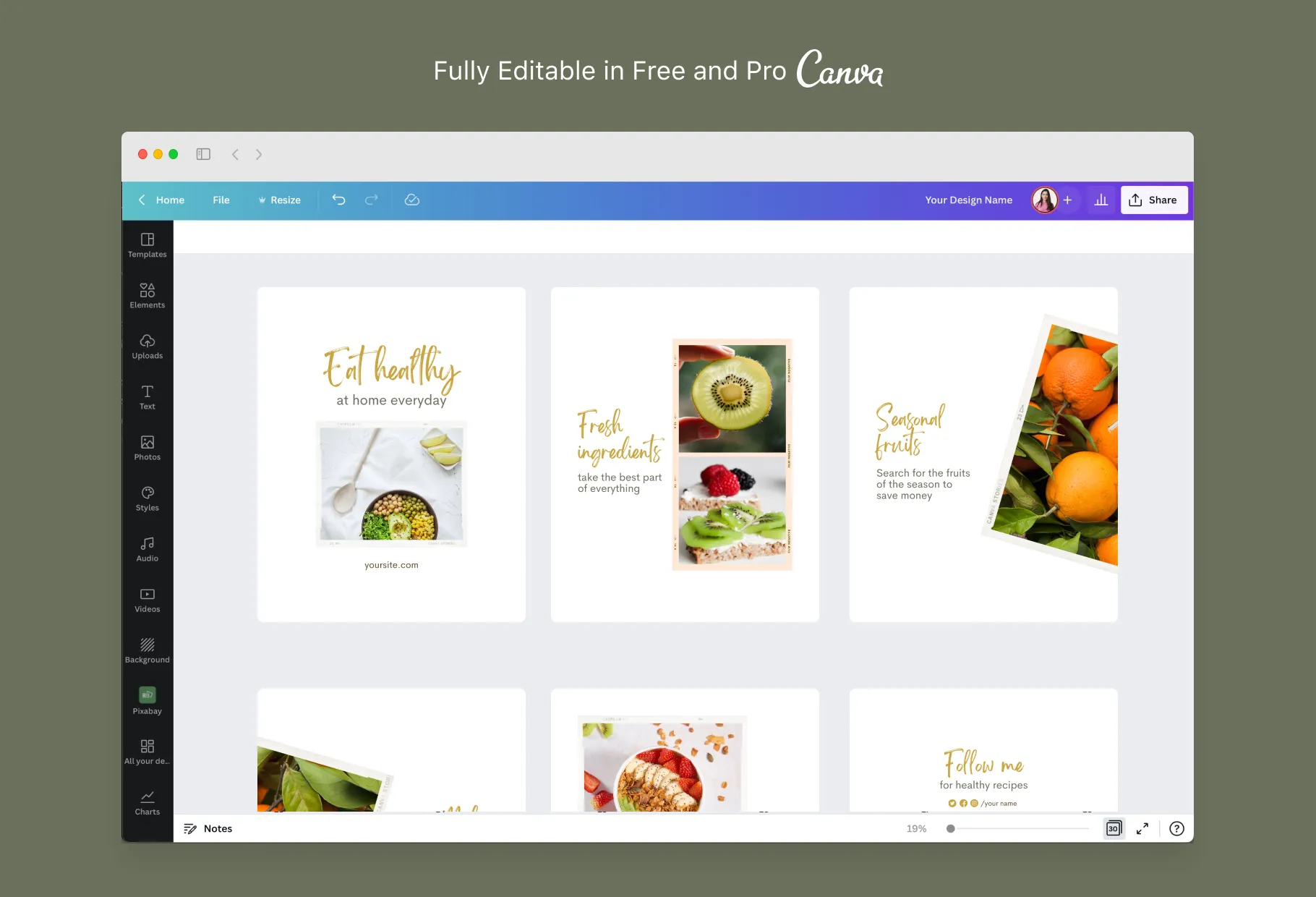 No paid Canva subscription is required in order to use our templates. In fact, the template will work with both free and Canva pro accounts. All you need to do is create an account with Canva, and you’re good to go.