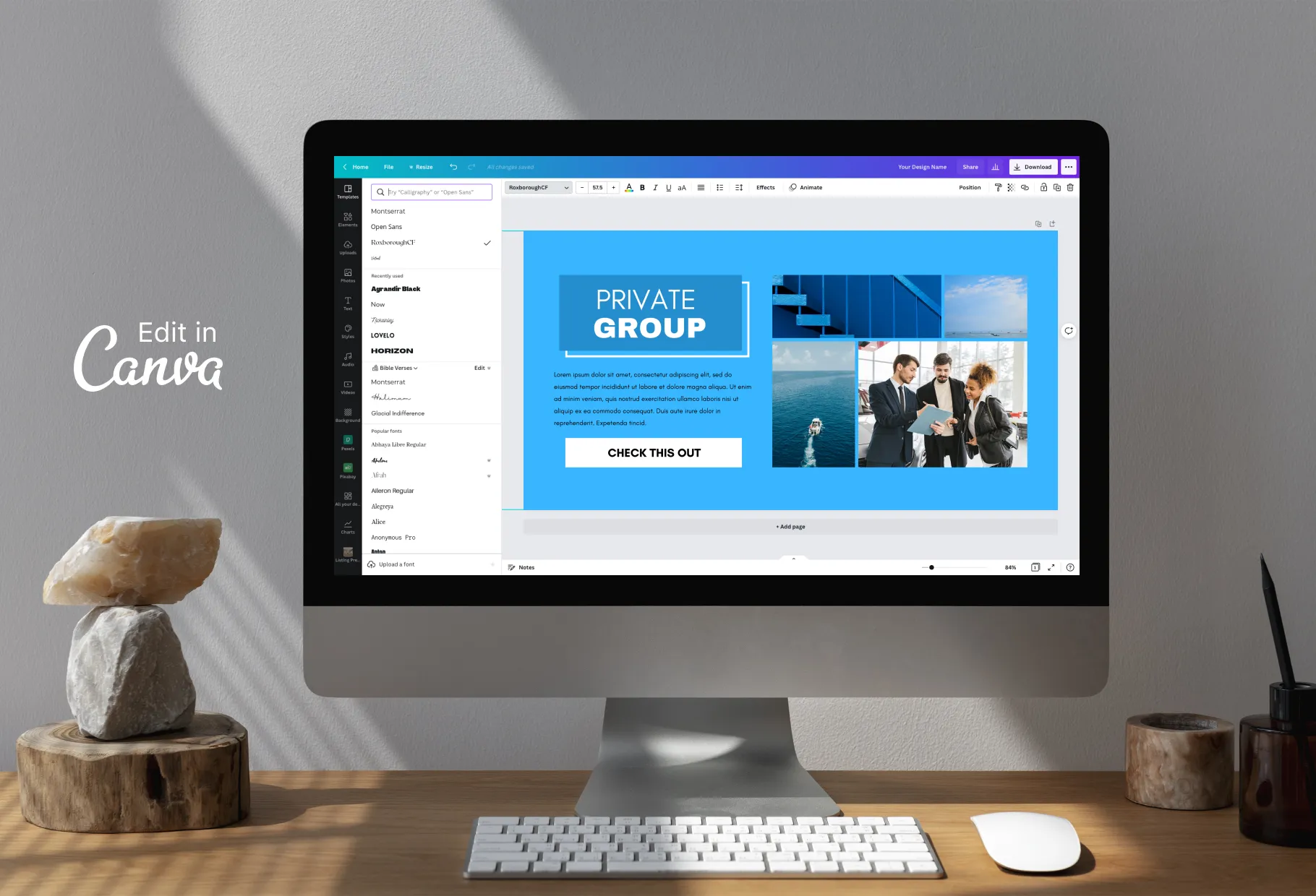 After purchasing the templates, all you need to do is create a Canva account either on your mobile device or computer. There, you will be able to access all of the Canva templates you purchased and edit them accordingly.