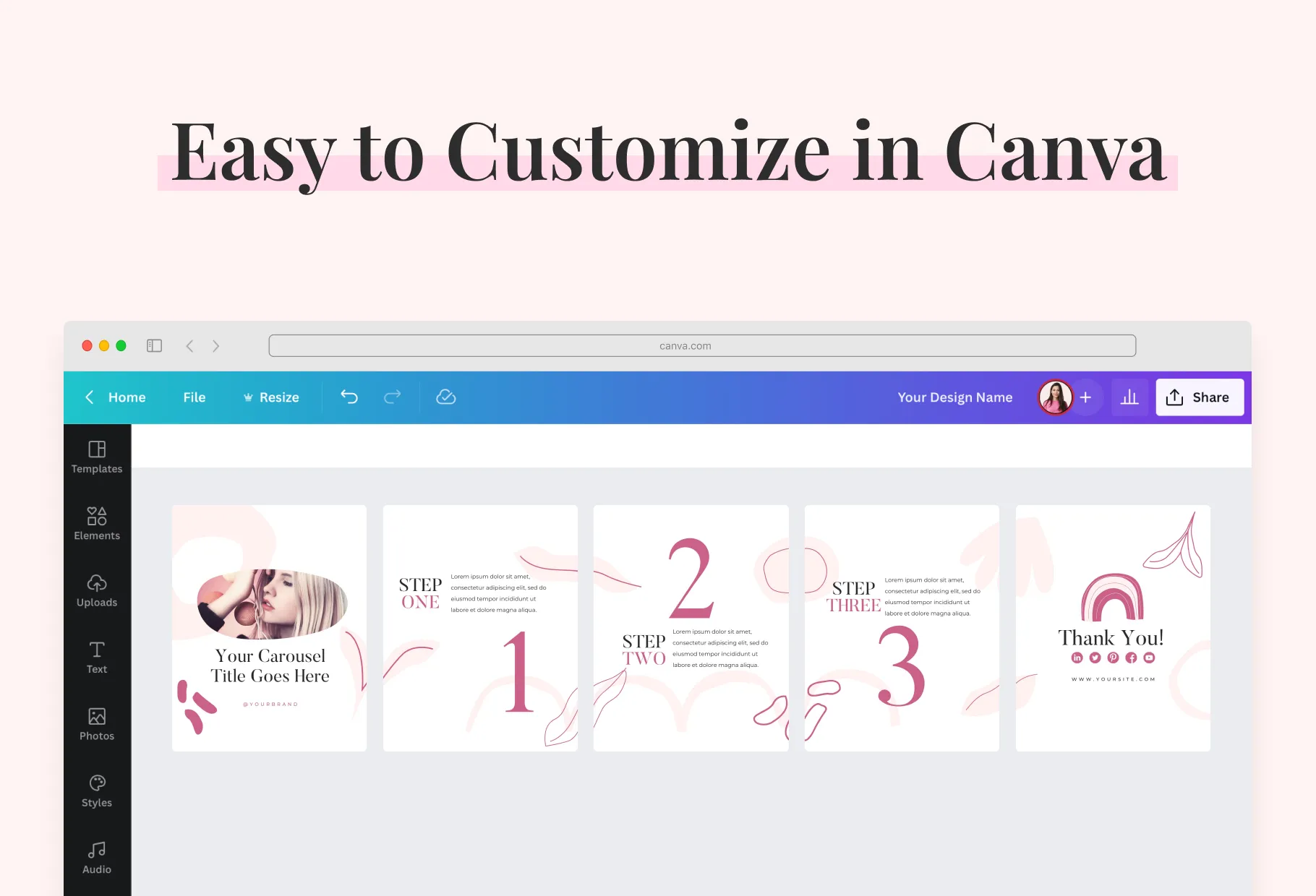 After purchasing the templates, all you need to do is create a Canva account either on your mobile device or computer. There, you will be able to access all of the Canva templates you purchased and edit them accordingly.