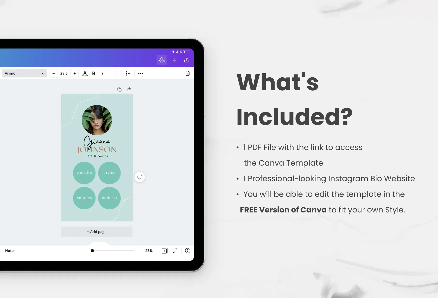 Here's how it works: https://bit.ly/3q4Xex4 - Create a mobile-ready one-of-a-kind personalized landing page for your Instagram bio with this beautiful Canva template! No website or programming skills needed! This Instagram Link in Bio Canva Landing Page Website will help you create a simple and elegant-looking website for you to showcase your offers, lead magnets, social networks, email list, products, services, and more, thus enabling you to lead the visitor down your conversion funnel. Within just minutes you'll be able to create an amazing landing page that will drive traffic to your blog or next campaign idea. it’ll be as simple as 1-2-3! Perfect for coaches, content creators, service providers, bloggers, and podcasters. - No website or domain required. - No complex tools needed. - No code and No stress.