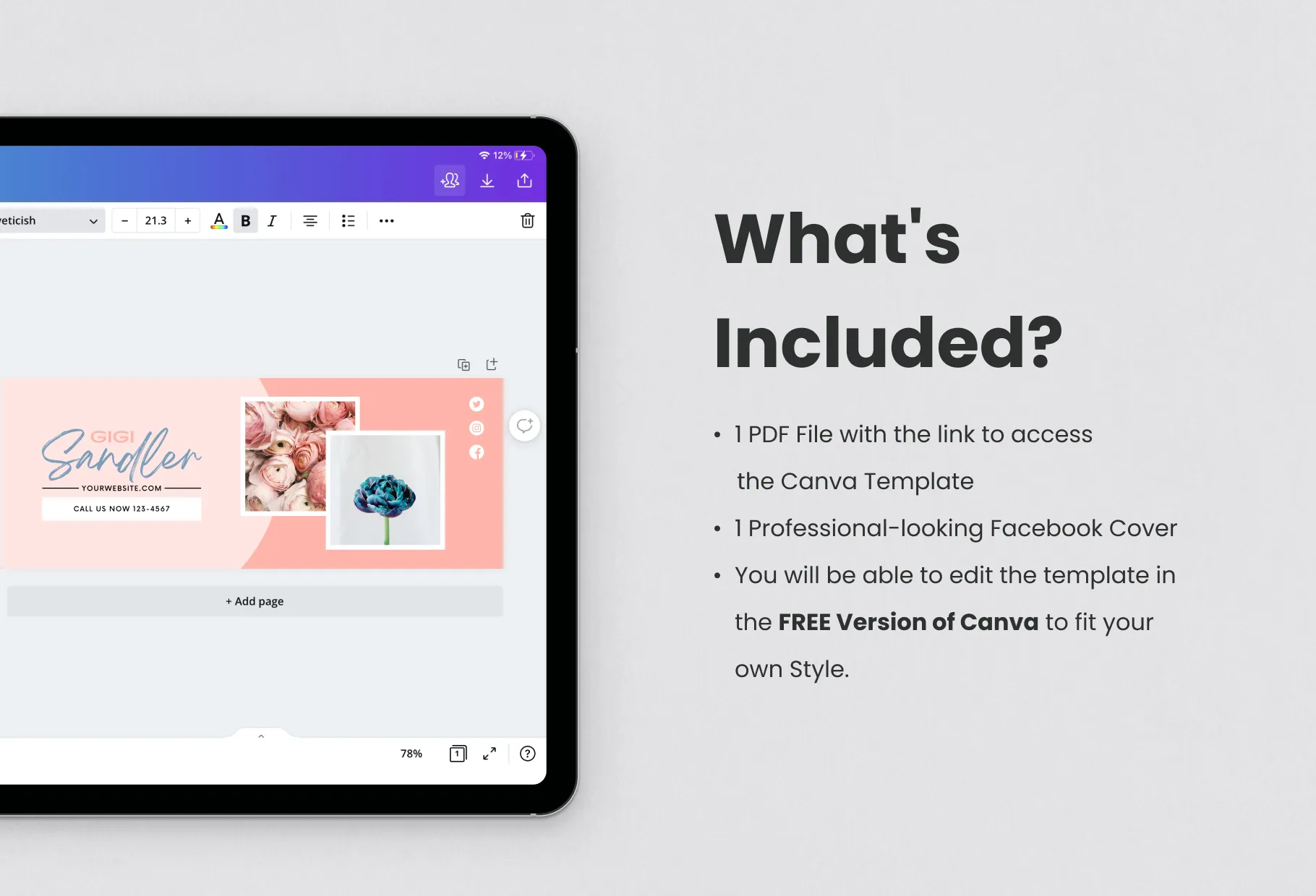 Keep your Facebook page looking fresh and trendy with this new Canva Facebook cover template! Create a beautiful and professional-looking Facebook Cover for your business in just minutes. Go from basic to awesome by using this easy-to-use design that you can customize in no time, without any graphic skills. Instantly boost your social media presence with this beautiful Facebook Cover for Canva.