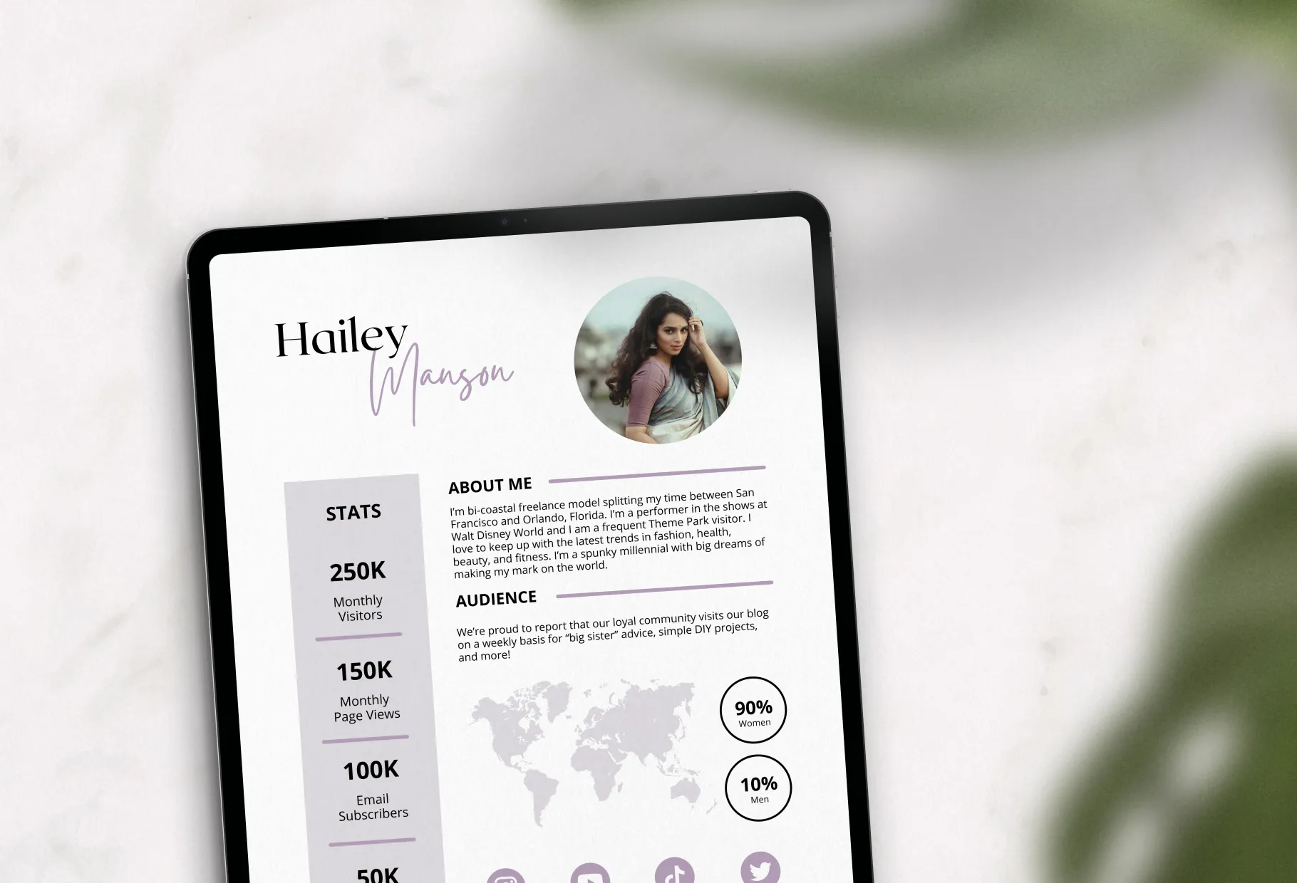 Do you have a blog, podcast or YouTube channel? If so, then you know how important it is to market yourself and your content. But creating Media Kits can be time-consuming and difficult. That’s why I created this beautiful media kit template for influencers. It’s easy to customize with Canva, making it the perfect tool for any business owner who wants to stand out from their competitors. Download Now.