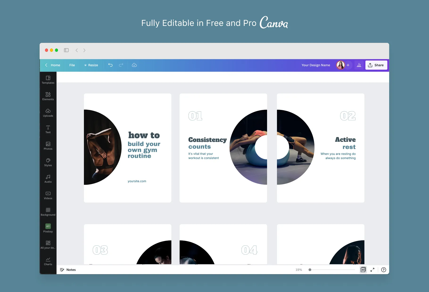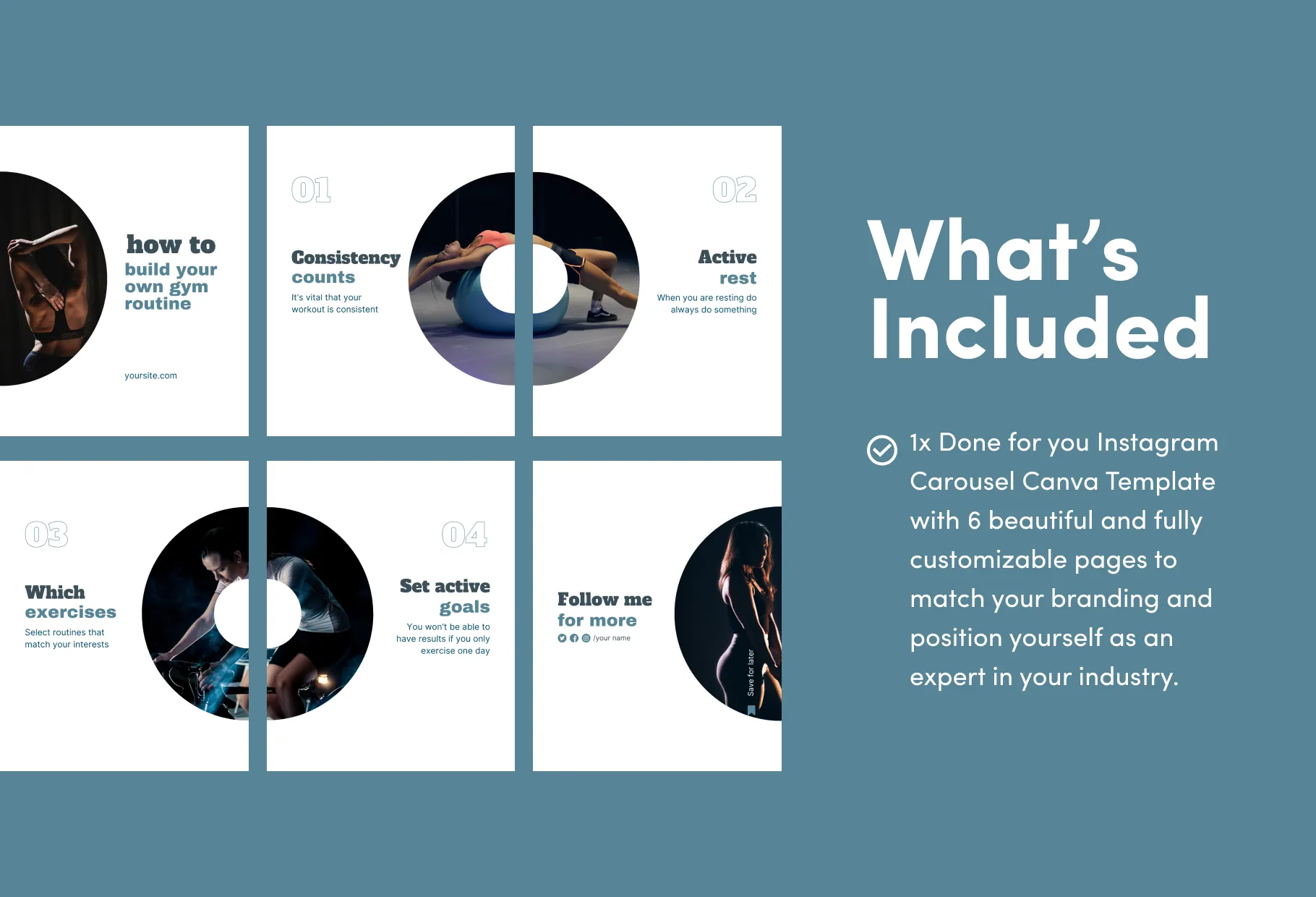 Harper Fitness 6-Page Carousel Canva Template