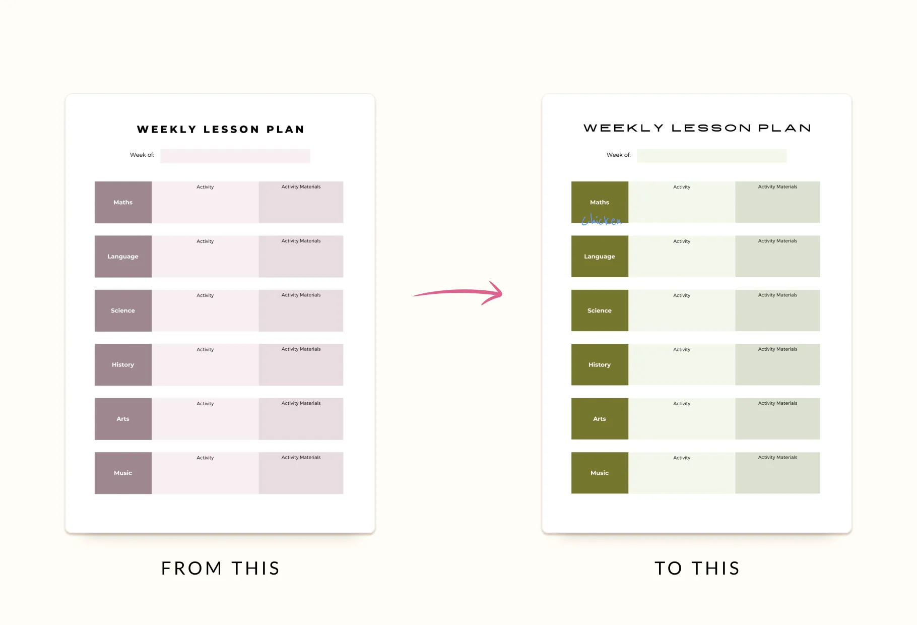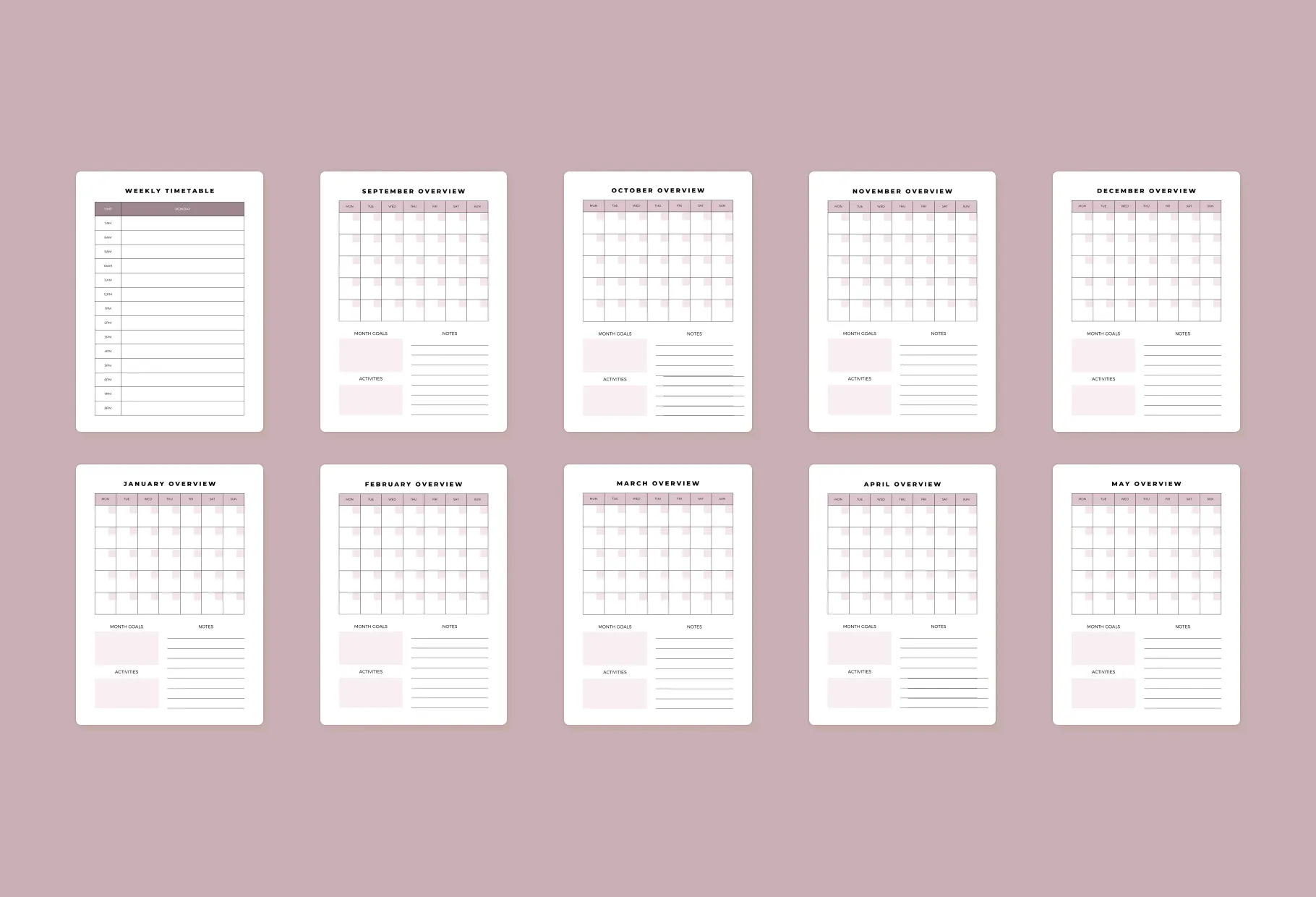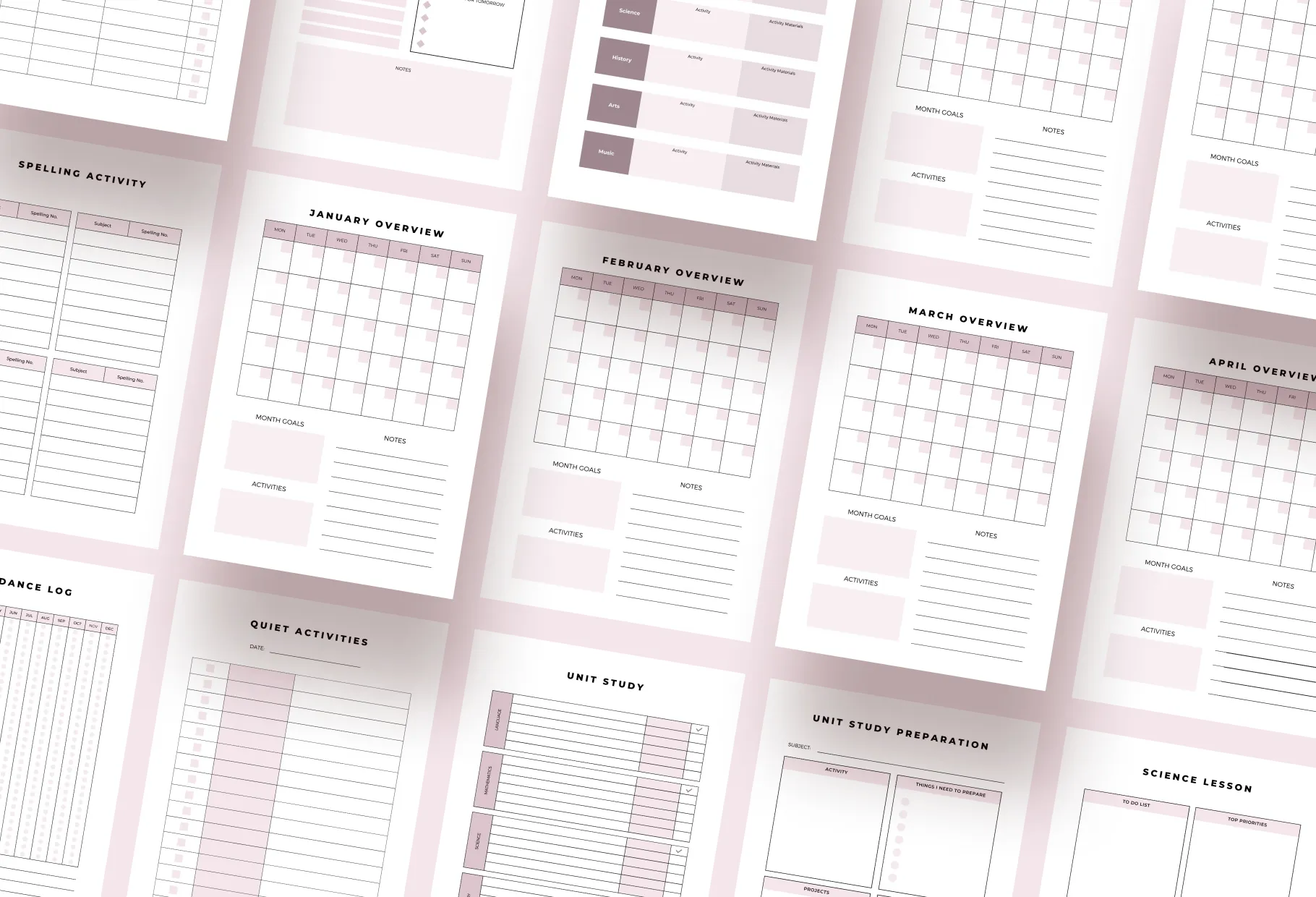 I've created a Homeschool Planner Canva Template that simplifies the challenging task of organizing your homeschool routine. As a homeschooling parent, I understand how overwhelming it can be to juggle different subjects, activities, and schedules. That's why I designed this template to address these pain points, offering a structured yet flexible way to plan your homeschooling year. The heart of this planner is its comprehensive range of pages, each thoughtfully crafted to cater to various aspects of homeschooling. From a Reading Log that helps track your child's reading progress, to a Website Tracker that keeps online resources at your fingertips. The Class Schedule and Lesson Planner allow you to map out educational activities, while the Weekly and Daily Planners help manage time effectively. The Year At Glance page provides a bird's eye view of your annual plan, ensuring you stay on track. For each month, from September to May, there's a dedicated Overview page, allowing for detailed planning and reflection specific to the time of the year. This feature is especially helpful for aligning your curriculum with seasonal activities and holidays. Additionally, this template includes specialized pages like Quiet Activities, Unit Study, Unit Study Preparation, and a Science Lesson planner, enabling you to diversify and enrich your homeschooling experience. This template is not only for seasoned homeschoolers but also for newbies, working parents who are homeschooling, tutors, and even traditional teachers looking for a more organized approach. It's an invaluable tool for anyone involved in the educational journey of a child. I invite you to download my Homeschool Planner Canva Template today and experience the ease and clarity it brings to your homeschool planning. Let this template be the backbone of your educational adventure, streamlining your planning process, and leaving more time for the joy of teaching and learning. Reading Log Website Tracker Class Schedule Lesson Planner Weekly Planner Daily Planner Year At Glance Class Activities Weekly Timetable September Overview October Overview November Overview December Overview January Overview February Overview March Overview April Overview May Overview Quiet Activities Unit Study Unit Study Preparation Science Lesson