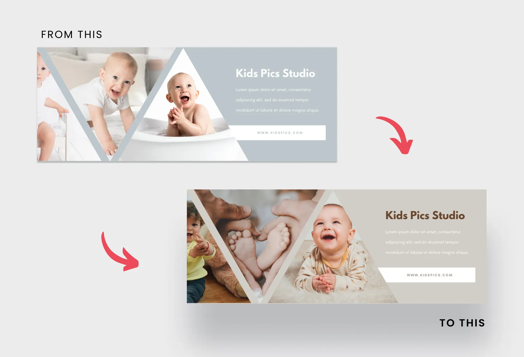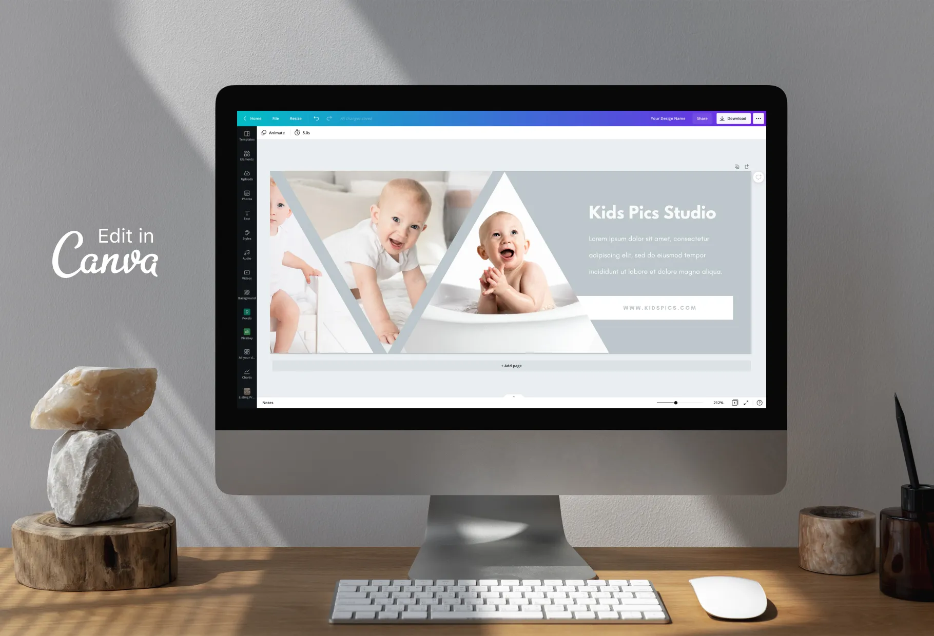 Kids Pics Studio Facebook Cover for Photographers Editable Canva Template
